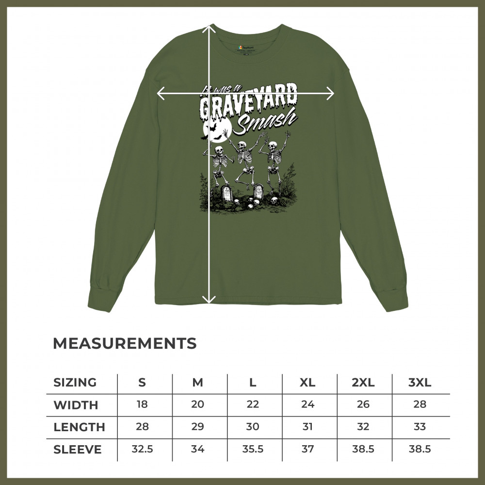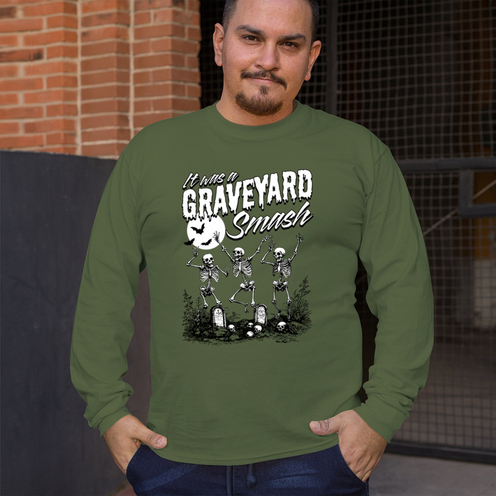 Add a touch of spooky fun to your Halloween attire with this "Graveyard Smash" design, showcasing skeletons dancing under the moonlight in a graveyard. Ideal for anyone who loves Halloween, this graphic tee is perfect for parties, haunted houses, or casual trick-or-treating. Made from high-quality materials, it offers both comfort and style, ensuring you look great while embracing the festive spirit. Available in multiple sizes, this shirt is a must-have for your Halloween collection.