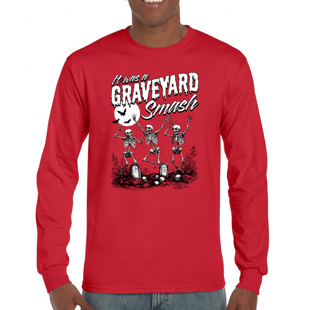 Add a touch of spooky fun to your Halloween attire with this "Graveyard Smash" design, showcasing skeletons dancing under the moonlight in a graveyard. Ideal for anyone who loves Halloween, this graphic tee is perfect for parties, haunted houses, or casual trick-or-treating. Made from high-quality materials, it offers both comfort and style, ensuring you look great while embracing the festive spirit. Available in multiple sizes, this shirt is a must-have for your Halloween collection.
