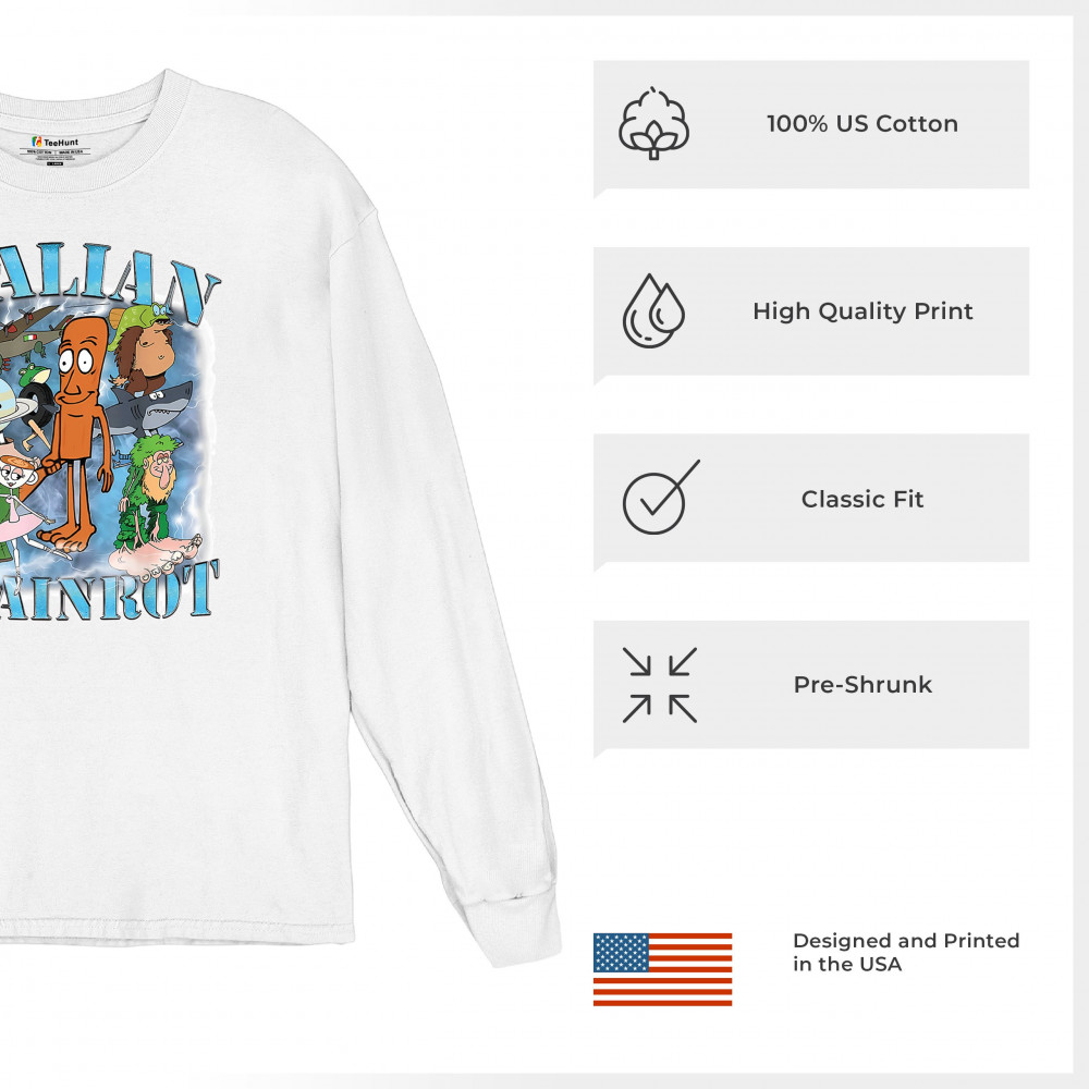 Unleash pure meme chaos with our Italian Brainrot shirt featuring iconic Gen Z fever dream characters like Chimpanzini Bananini, Tralalero Tralala, and Bombardino crocodile. This absurd design captures viral humor, ironic fashion, and chaotic energy, perfect for cursed meme fans, TikTok lovers, Gen Alpha vibes, and surreal internet style.
