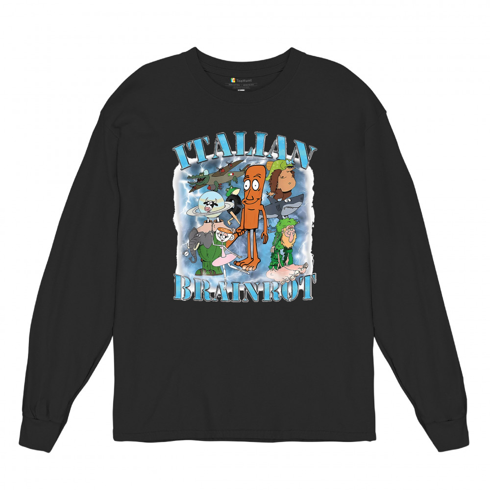 Unleash pure meme chaos with our Italian Brainrot shirt featuring iconic Gen Z fever dream characters like Chimpanzini Bananini, Tralalero Tralala, and Bombardino crocodile. This absurd design captures viral humor, ironic fashion, and chaotic energy, perfect for cursed meme fans, TikTok lovers, Gen Alpha vibes, and surreal internet style.
