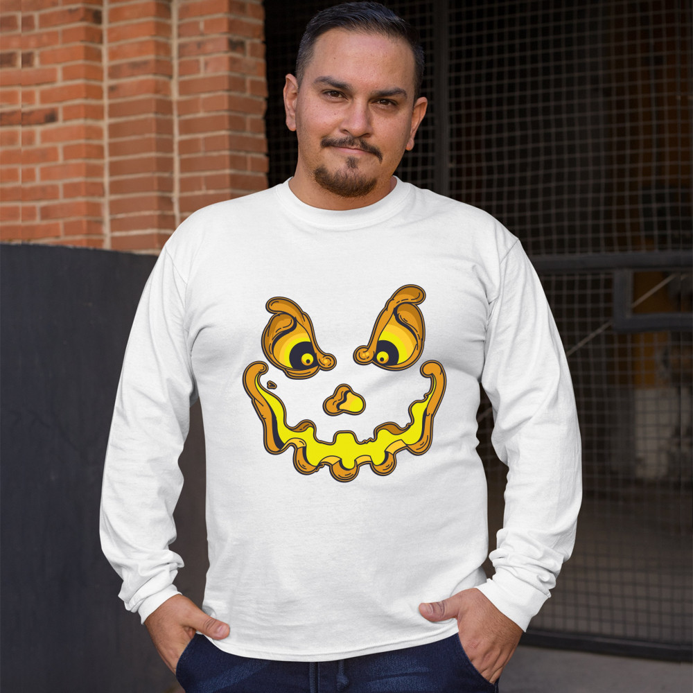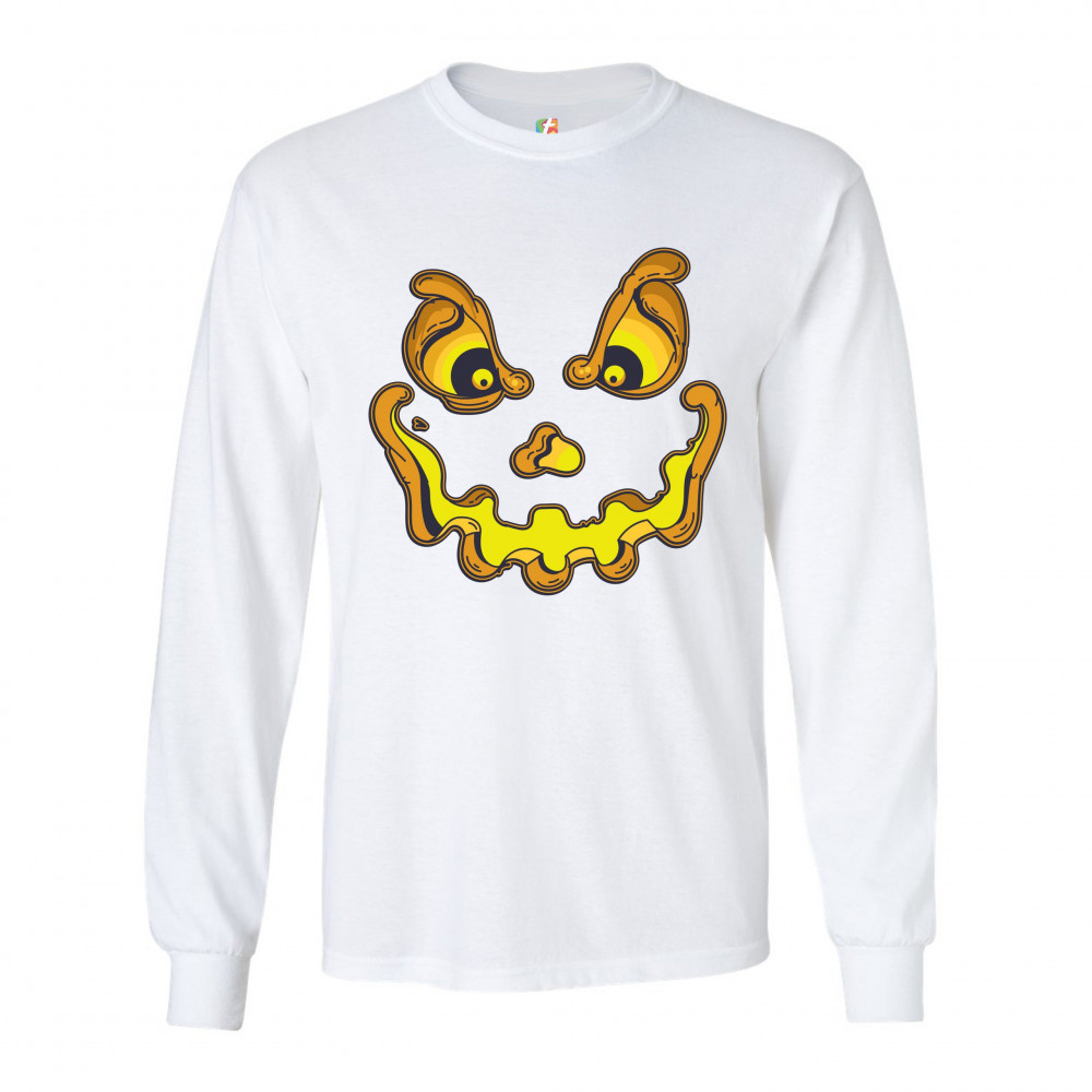 JACK-O-LANTERN PUMPKIN FACE long sleeve t-shirt trick-or-treat halloween white