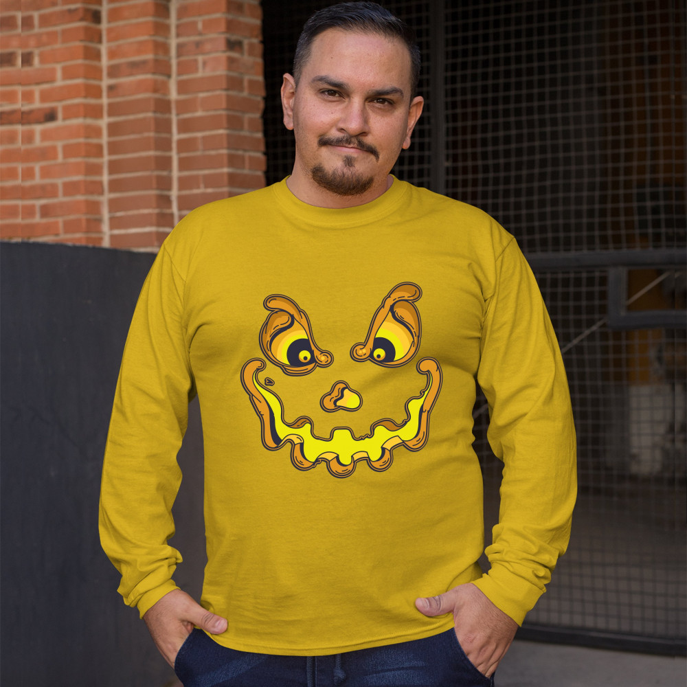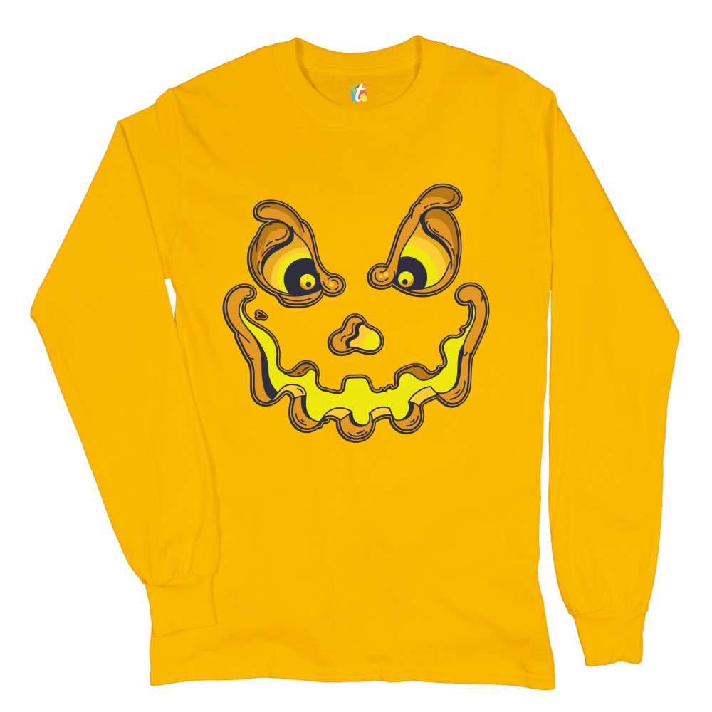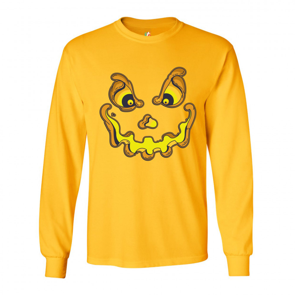 JACK-O-LANTERN PUMPKIN FACE long sleeve t-shirt trick-or-treat halloween yellow