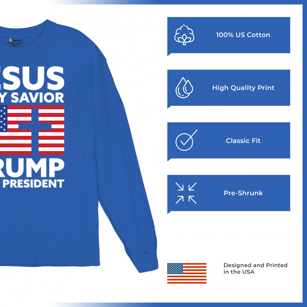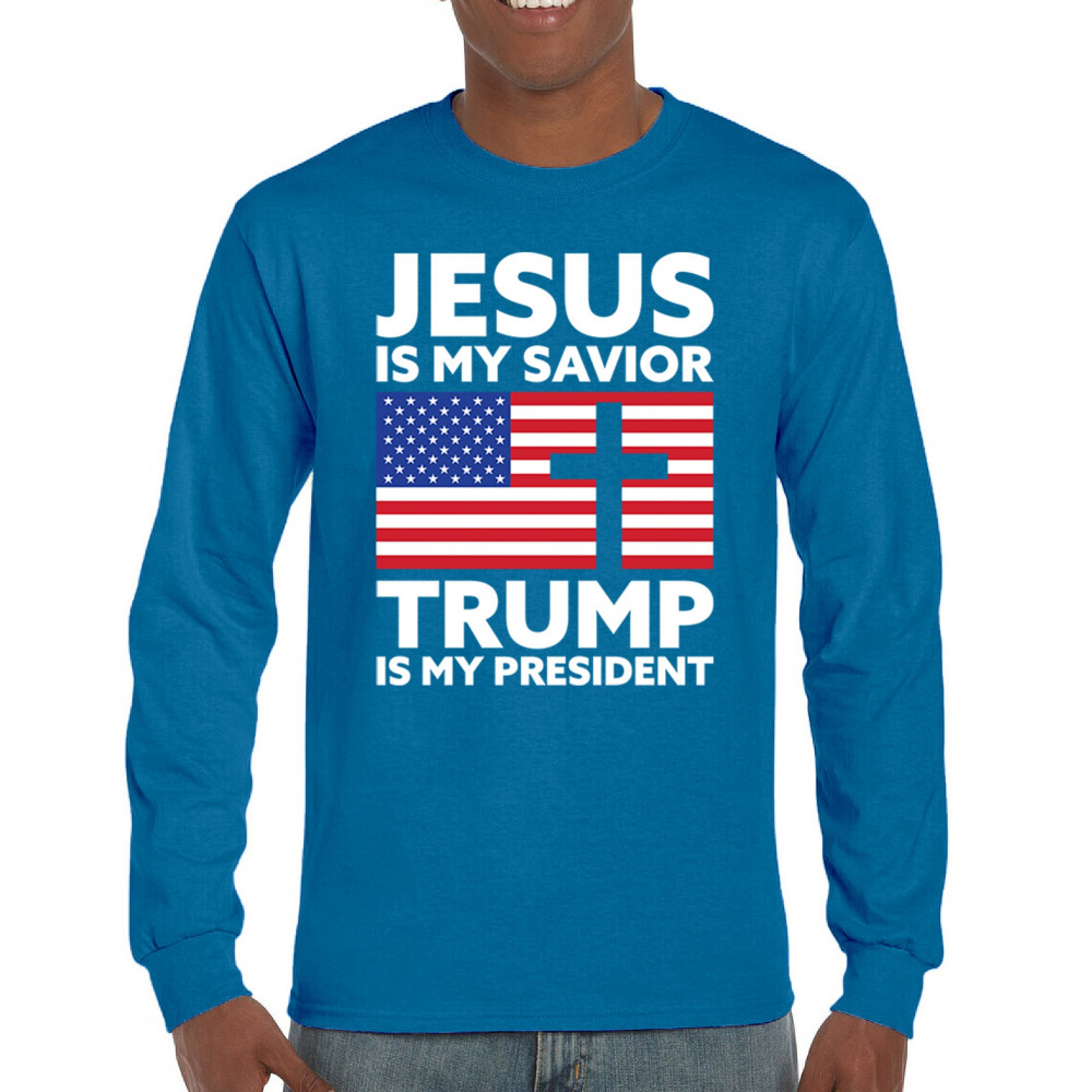 Celebrate your belief in Jesus Christ and your support for President Trump with our 'Jesus is My Savior Trump Is My President' design. Perfect for conservative patriots and MAGA enthusiasts, this design embodies the spirit of the Trump movement and the quest to Make America Great Again. Let's go Brandon! With vintage-inspired artwork and a nod to traditional values, this design is sure to resonate with supporters who trust God, not government.