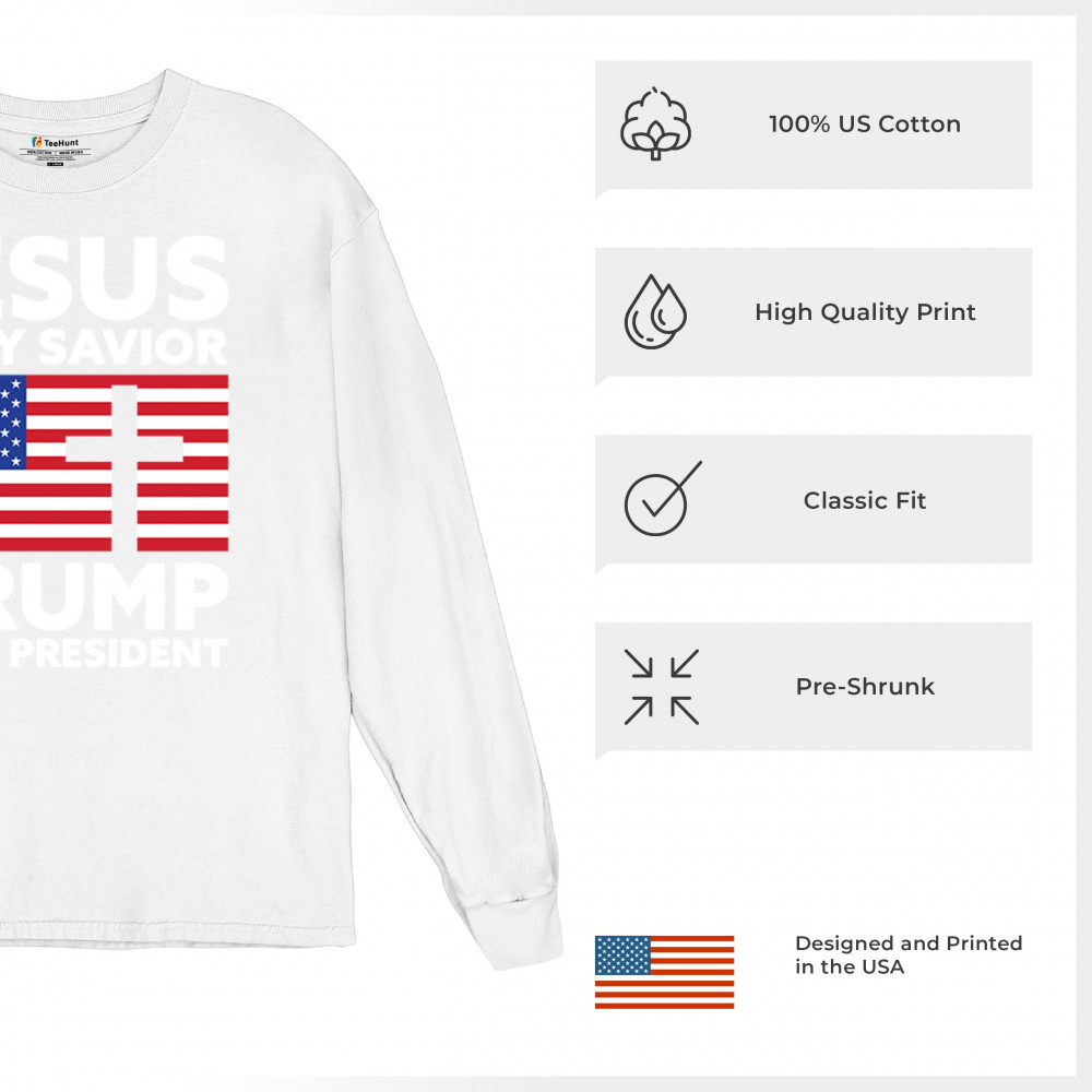 Celebrate your belief in Jesus Christ and your support for President Trump with our 'Jesus is My Savior Trump Is My President' design. Perfect for conservative patriots and MAGA enthusiasts, this design embodies the spirit of the Trump movement and the quest to Make America Great Again. Let's go Brandon! With vintage-inspired artwork and a nod to traditional values, this design is sure to resonate with supporters who trust God, not government.