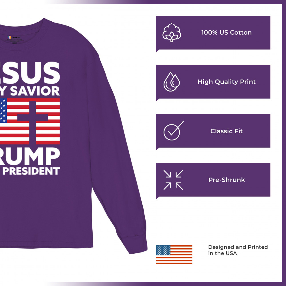 Celebrate your belief in Jesus Christ and your support for President Trump with our 'Jesus is My Savior Trump Is My President' design. Perfect for conservative patriots and MAGA enthusiasts, this design embodies the spirit of the Trump movement and the quest to Make America Great Again. Let's go Brandon! With vintage-inspired artwork and a nod to traditional values, this design is sure to resonate with supporters who trust God, not government.