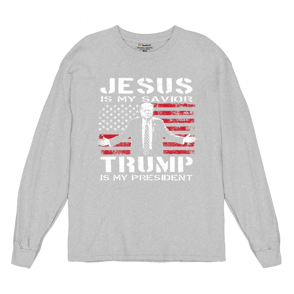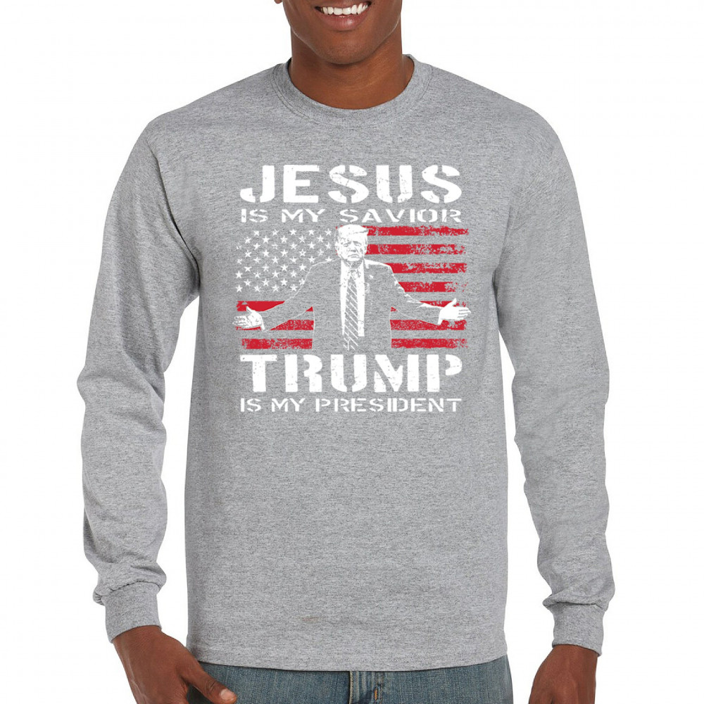 Express your unwavering faith and patriotism with the "Jesus is My Savior, Trump is My President" design. Perfect for conservatives, Republicans, and Trump supporters, this bold graphic combines spiritual devotion with a commitment to America First values. Celebrate the 47th President and the fight for freedom with this standout piece at rallies, events, or as a unique gift.