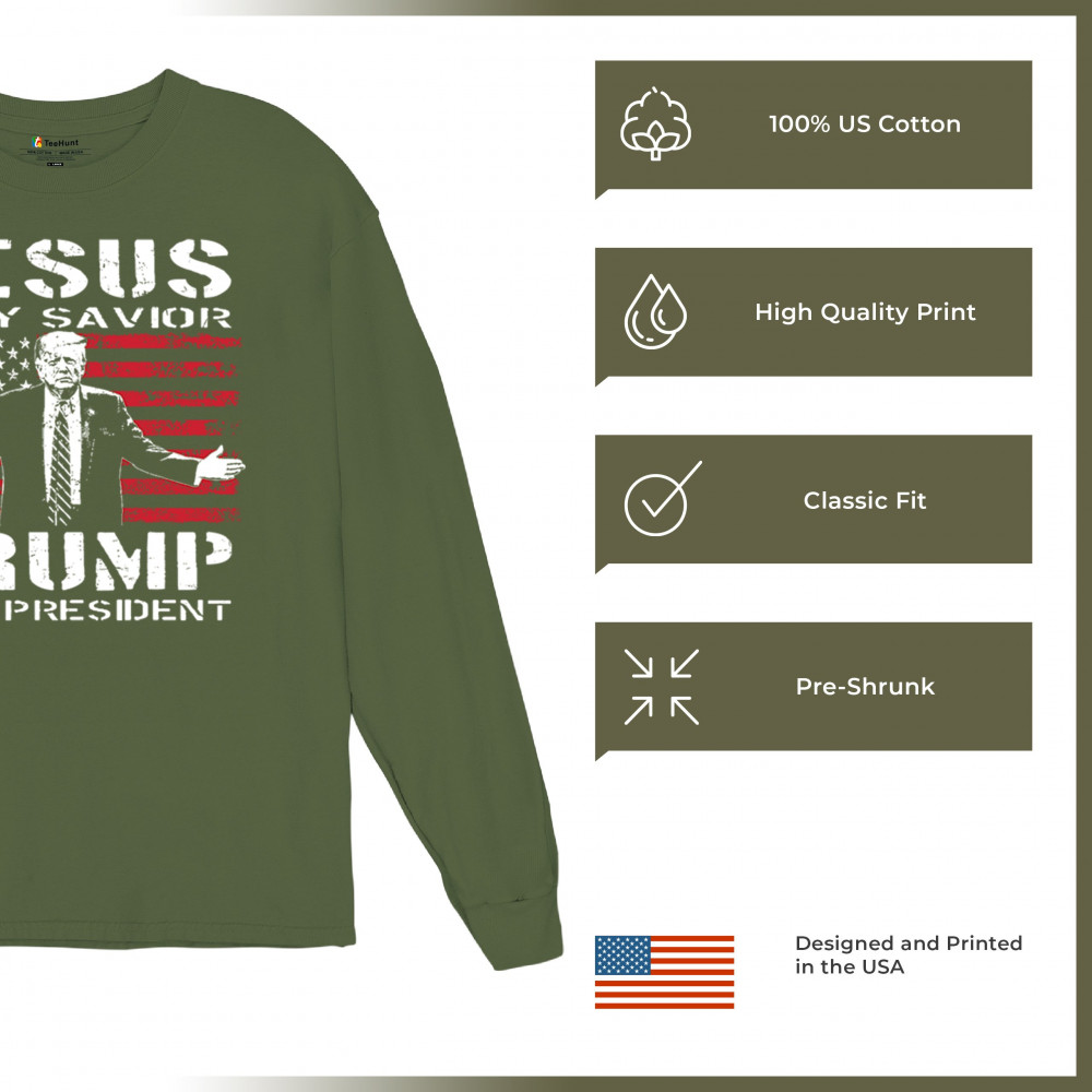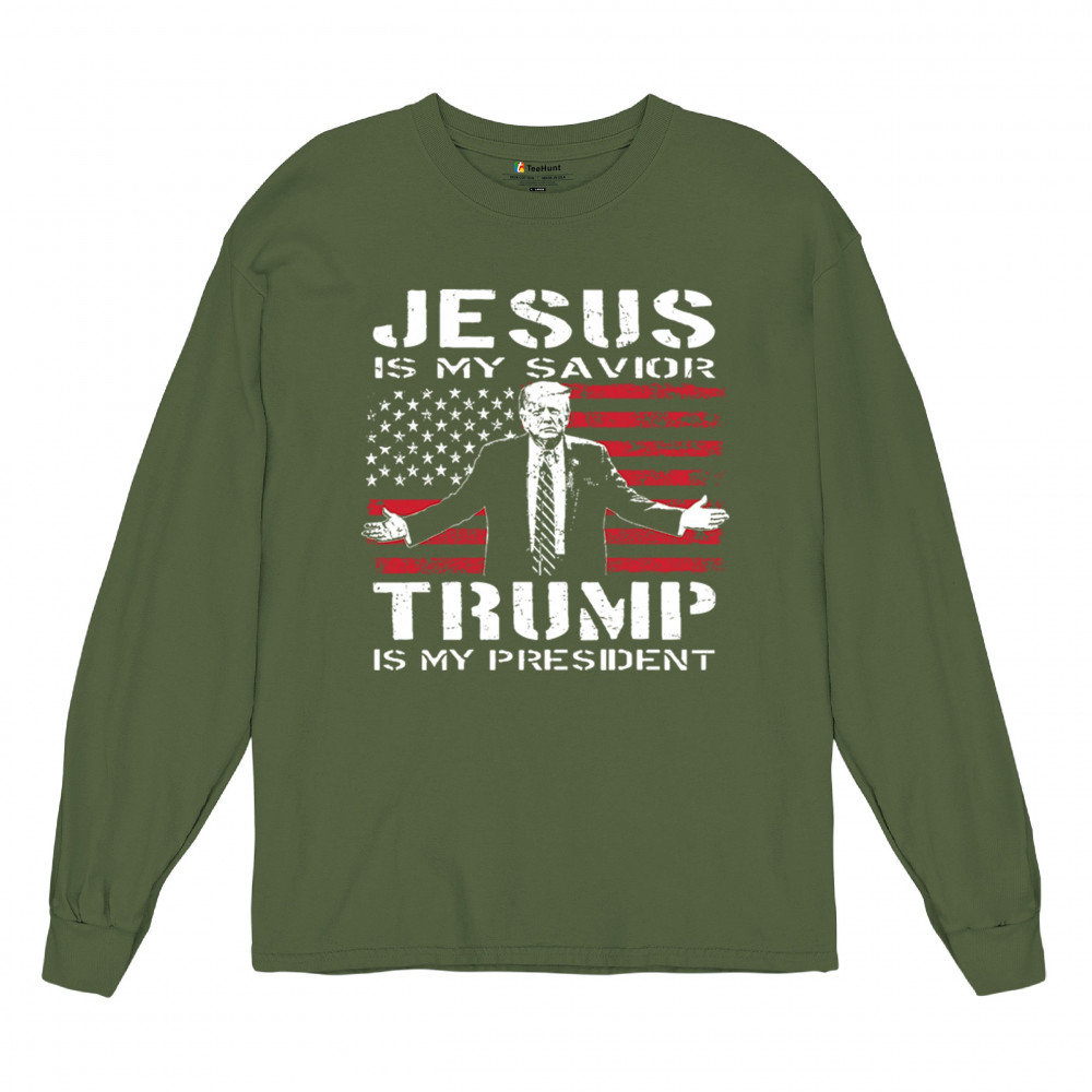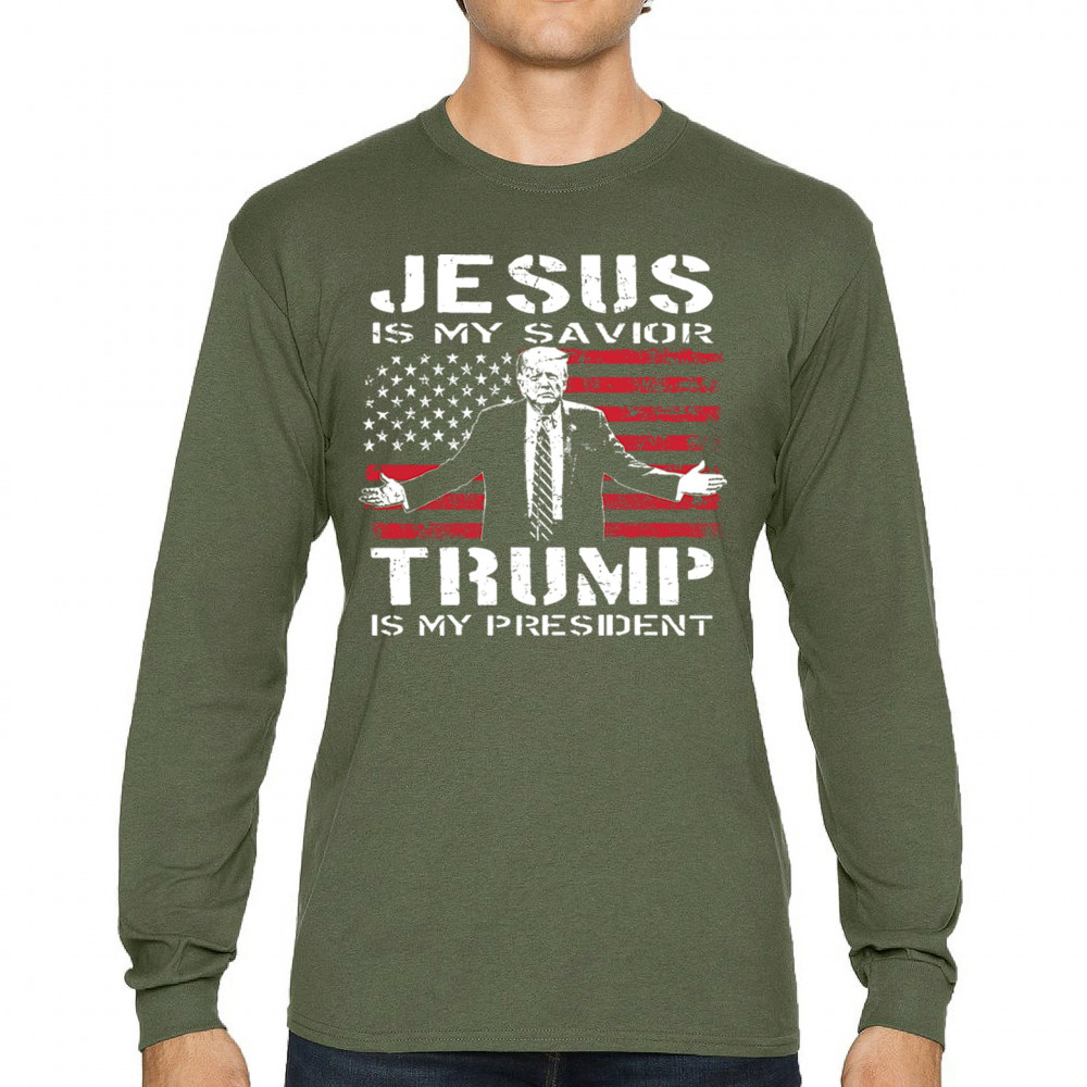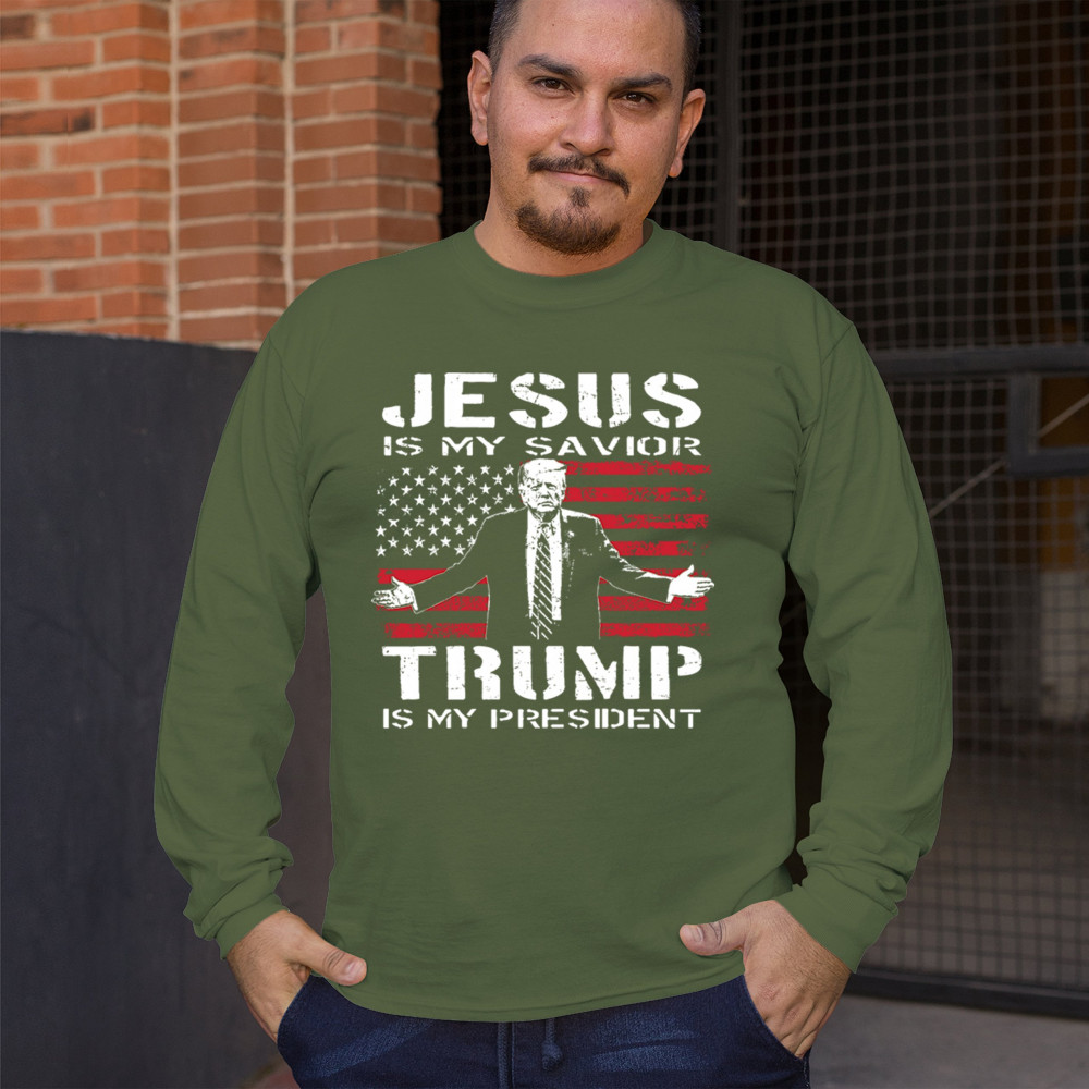 Express your unwavering faith and patriotism with the "Jesus is My Savior, Trump is My President" design. Perfect for conservatives, Republicans, and Trump supporters, this bold graphic combines spiritual devotion with a commitment to America First values. Celebrate the 47th President and the fight for freedom with this standout piece at rallies, events, or as a unique gift.
