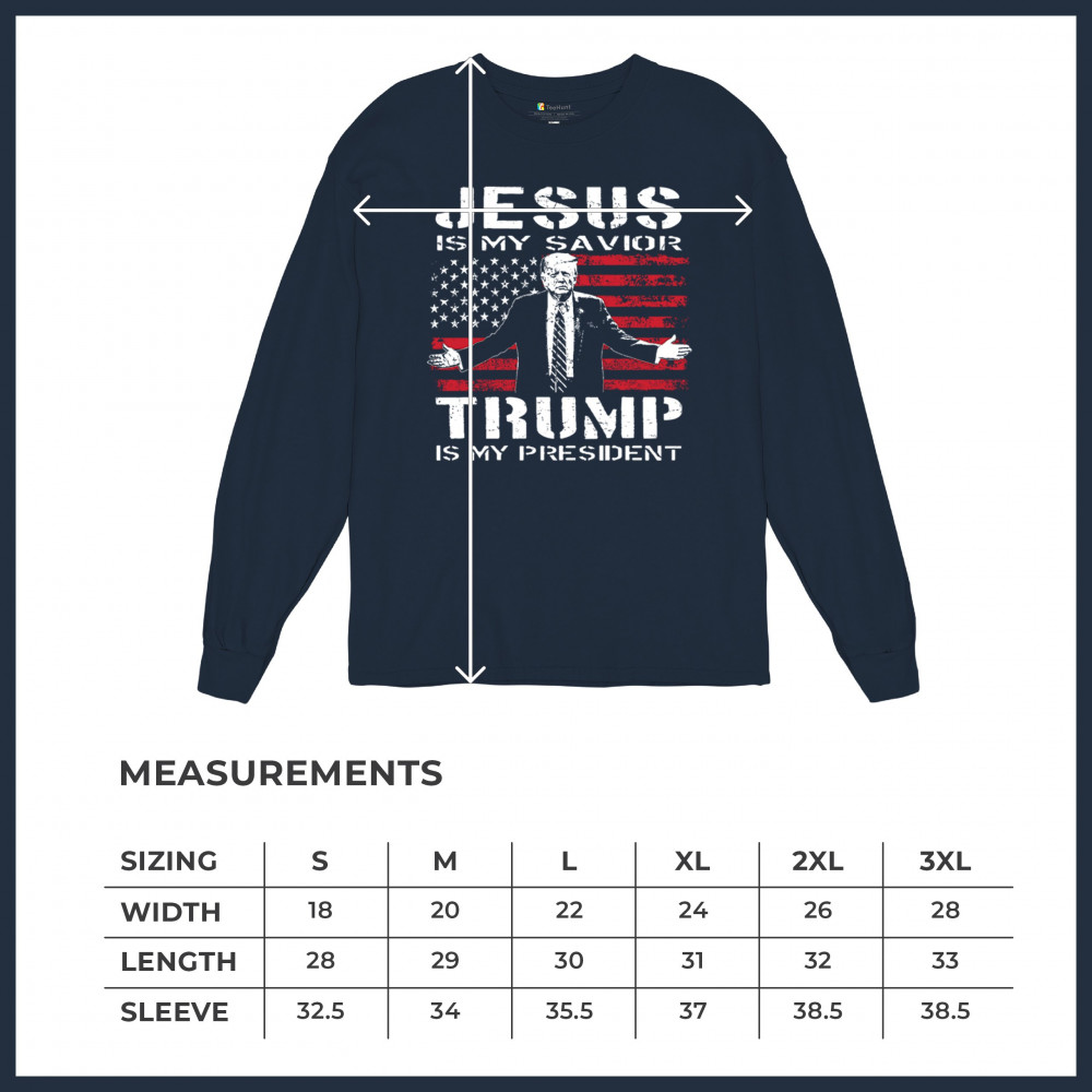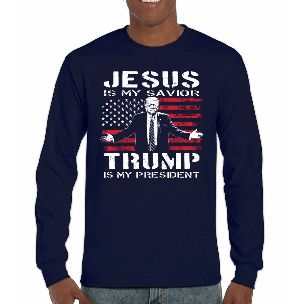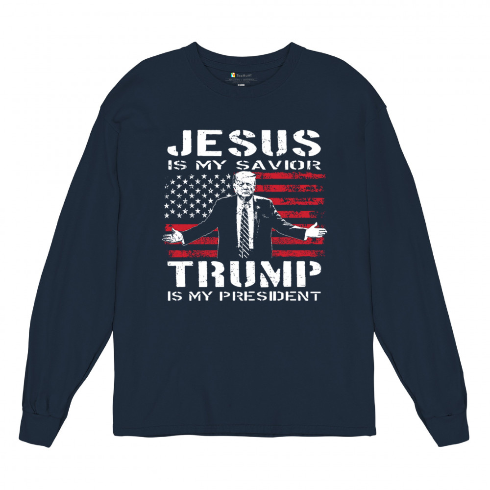 Express your unwavering faith and patriotism with the "Jesus is My Savior, Trump is My President" design. Perfect for conservatives, Republicans, and Trump supporters, this bold graphic combines spiritual devotion with a commitment to America First values. Celebrate the 47th President and the fight for freedom with this standout piece at rallies, events, or as a unique gift.
