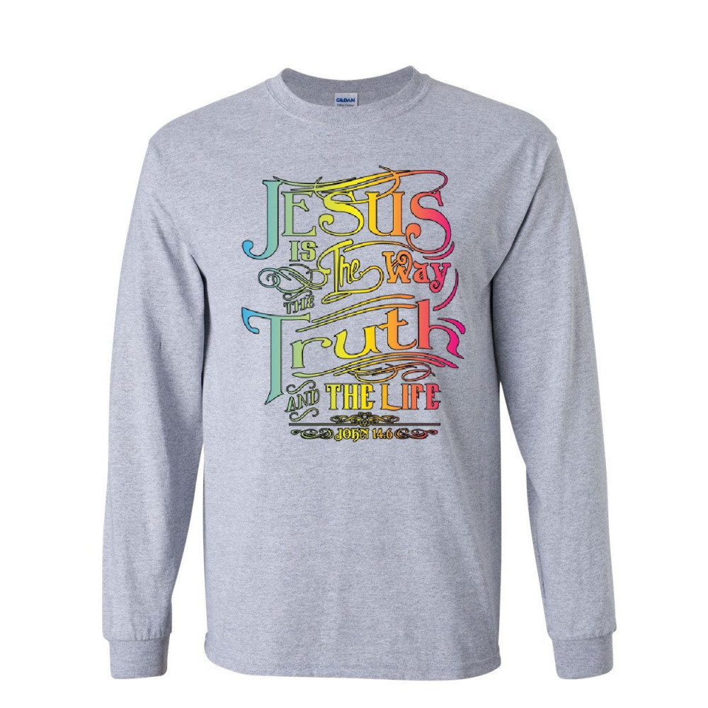 JESUS IS THE WAY long sleeve t-shirt truth life bible religion god lord pray tee gray