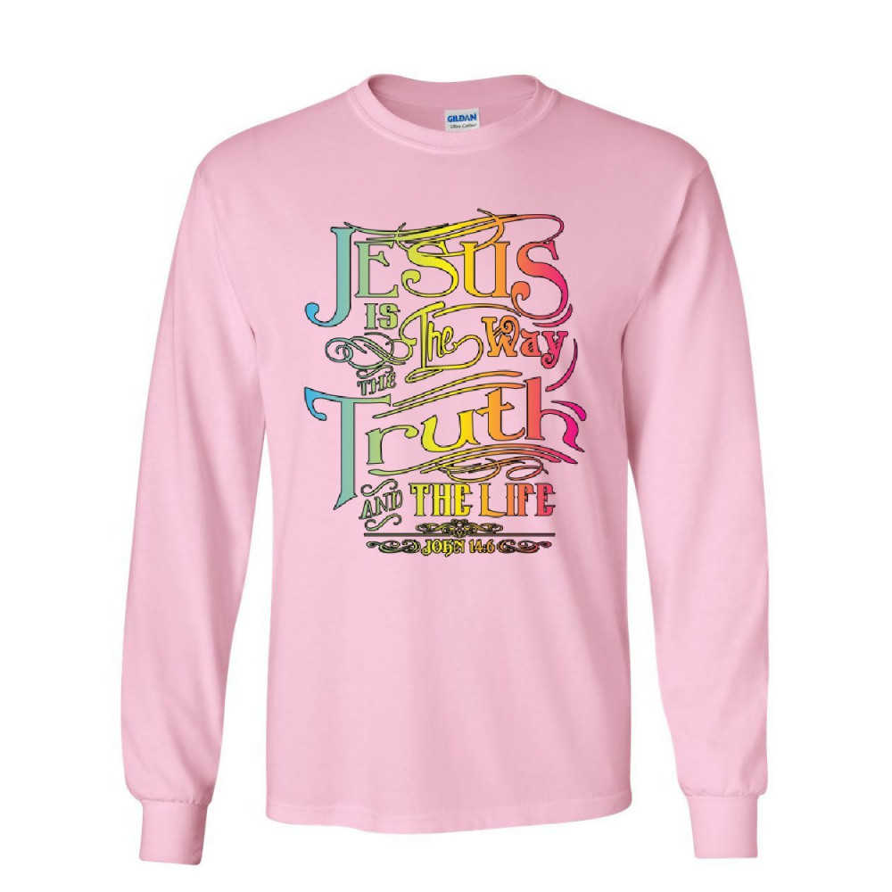 JESUS IS THE WAY long sleeve t-shirt truth life bible religion god lord pray tee light pink