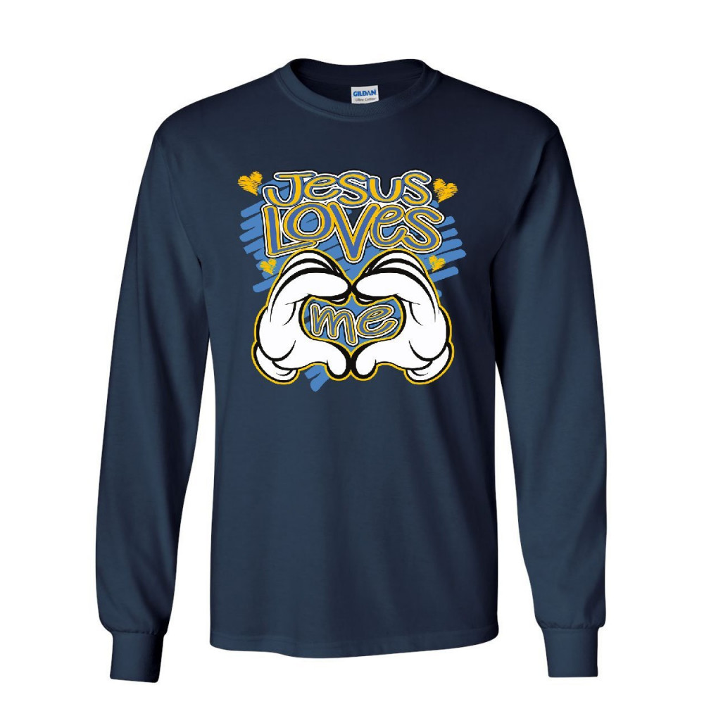 JESUS LOVES ME long sleeve t-shirt religion bible savior christianity church tee navy blue