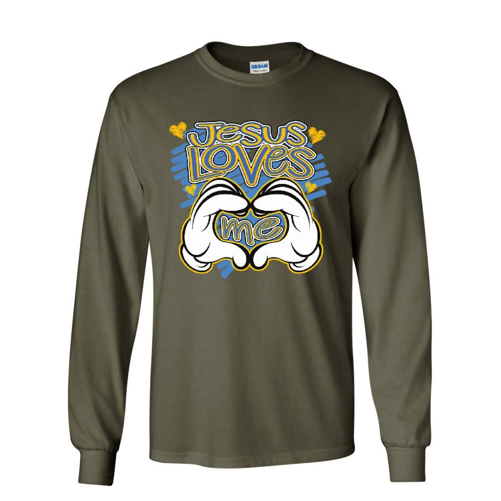 JESUS LOVES ME long sleeve t-shirt religion bible savior christianity church tee military green