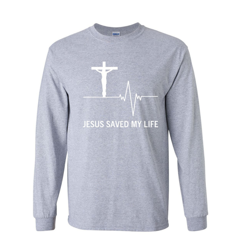 JESUS SAVED MY LIFE long sleeve t-shirt christian religion faith god gray