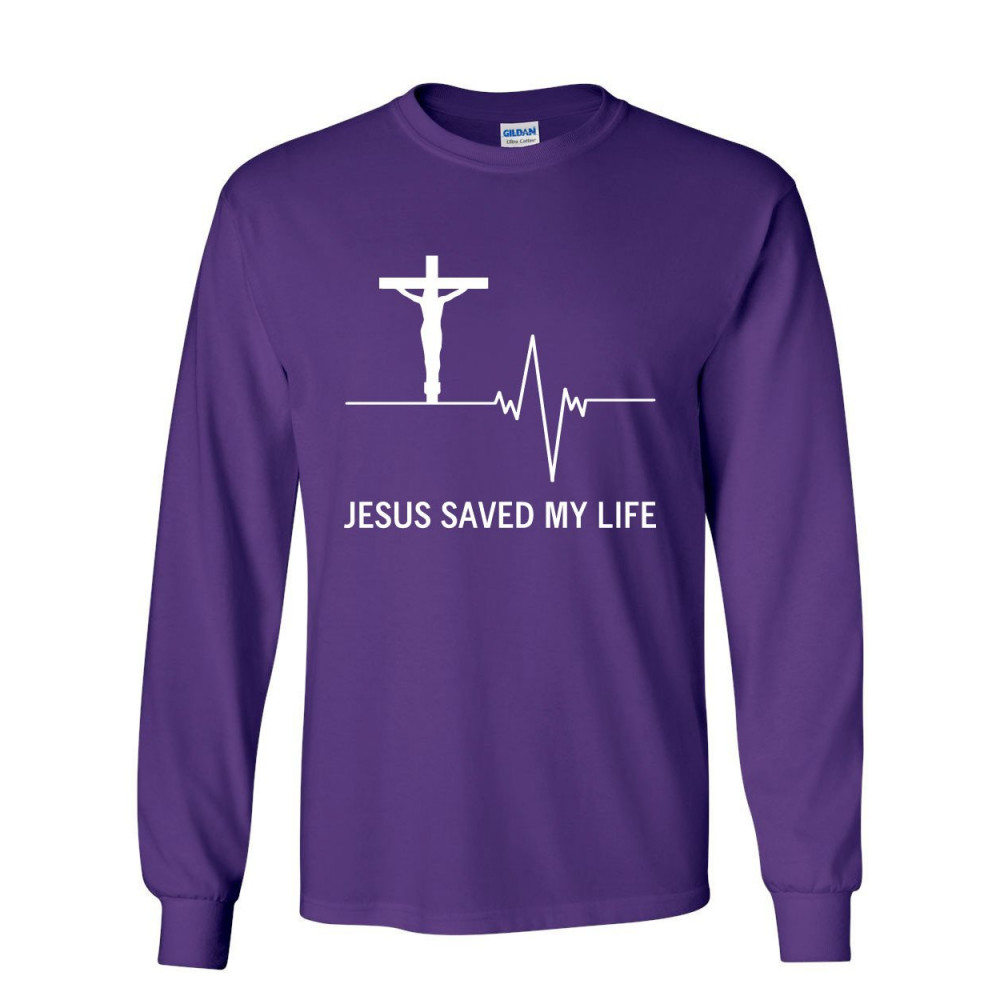 JESUS SAVED MY LIFE long sleeve t-shirt christian religion faith god purple