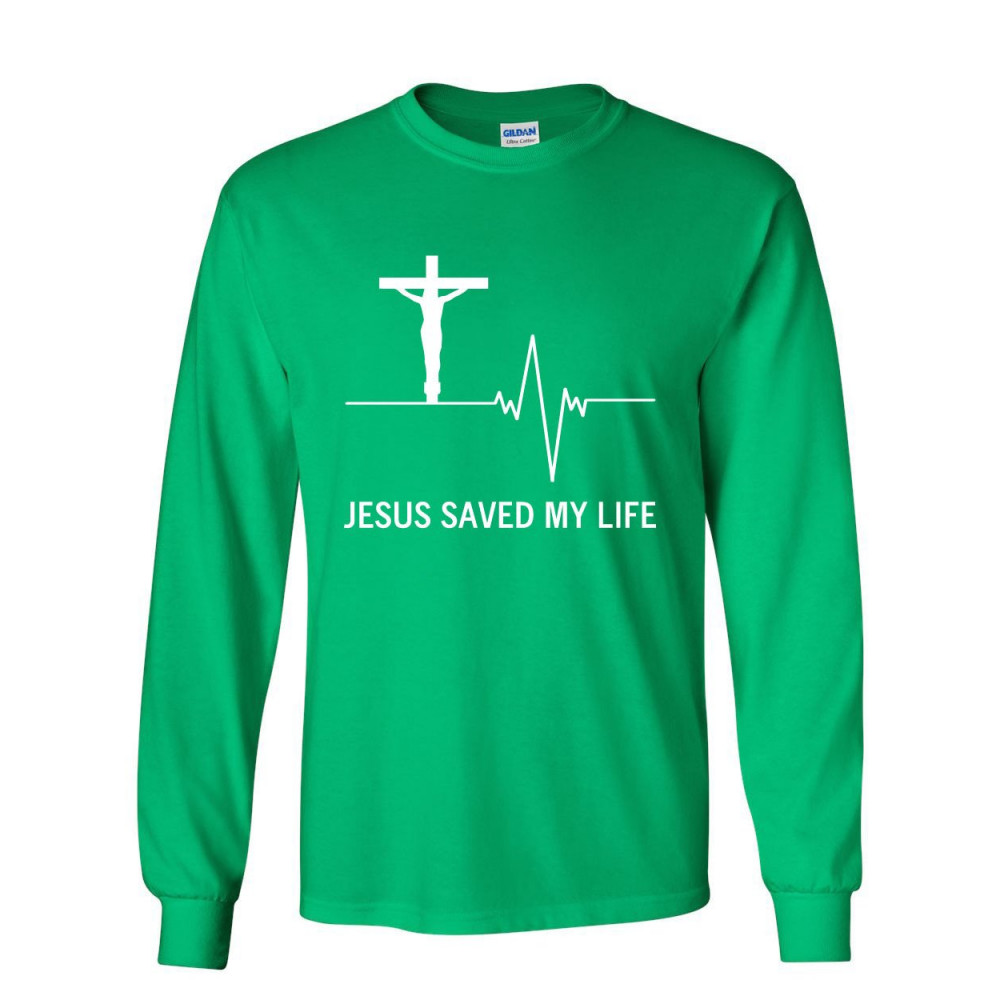 JESUS SAVED MY LIFE long sleeve t-shirt christian religion faith god green