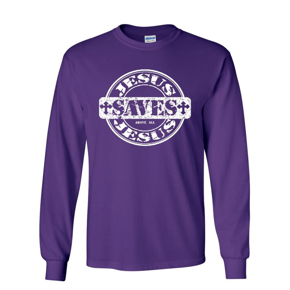 JESUS SAVES JESUS ABOVE ALL jesus saves long sleeve t-shirt jesus christ above all christianity bible tee purple
