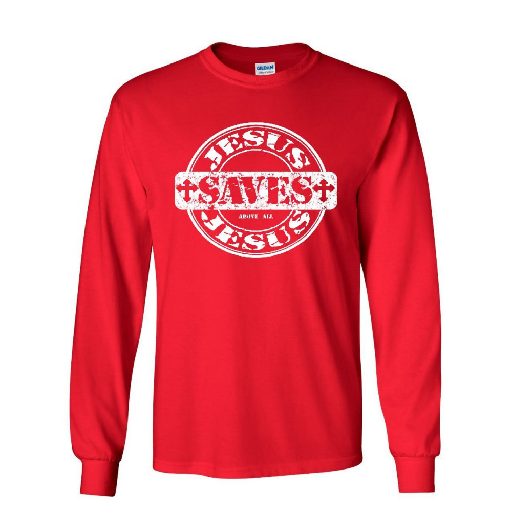 JESUS SAVES JESUS ABOVE ALL jesus saves long sleeve t-shirt jesus christ above all christianity bible tee red