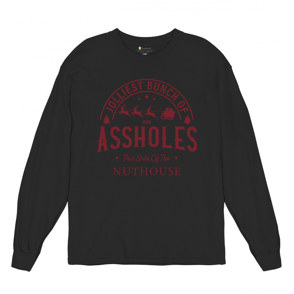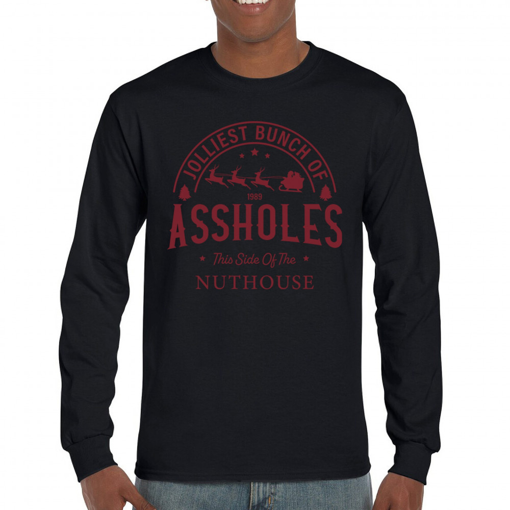 JOLLIEST BUNCH OF AS*HOL*S long sleeve t-shirt funny christmas santa claus black
