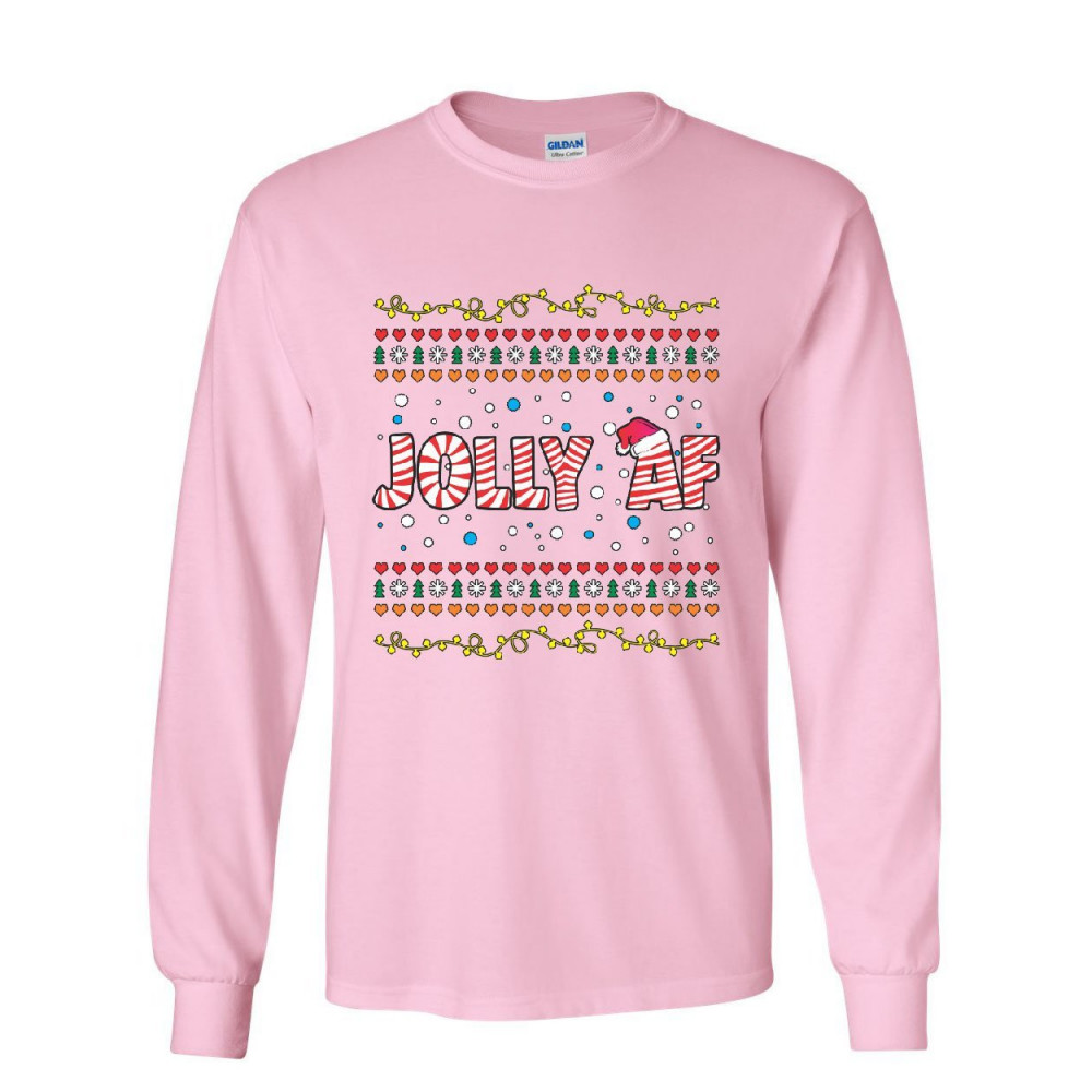 JOLLY AF long sleeve t-shirt funny christmas eve holiday spirit xmas santa tee light pink