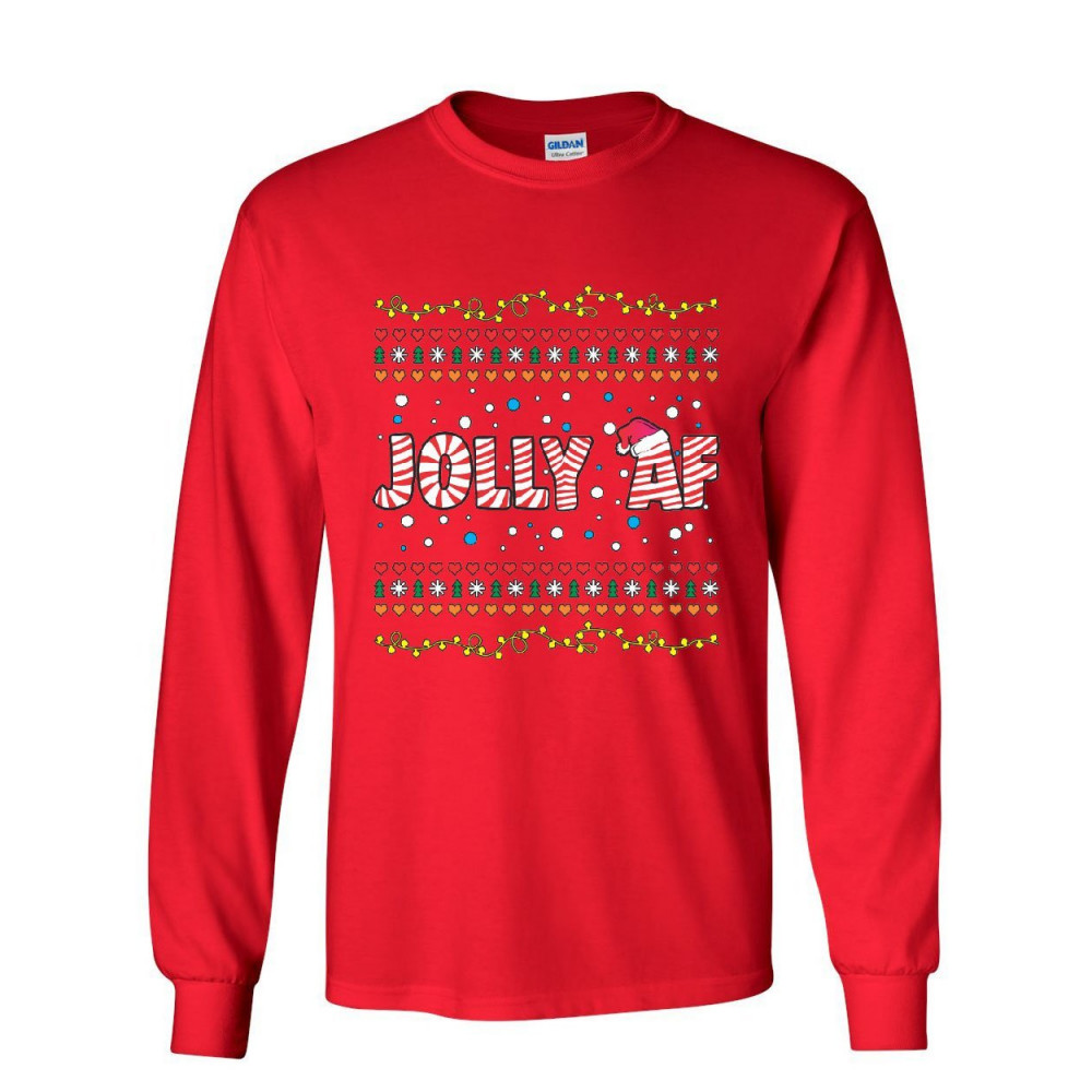 JOLLY AF long sleeve t-shirt funny christmas eve holiday spirit xmas santa tee red