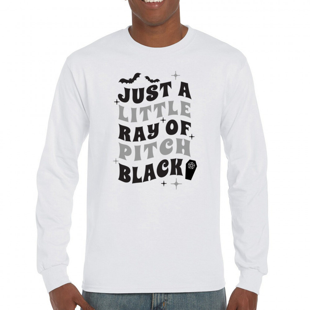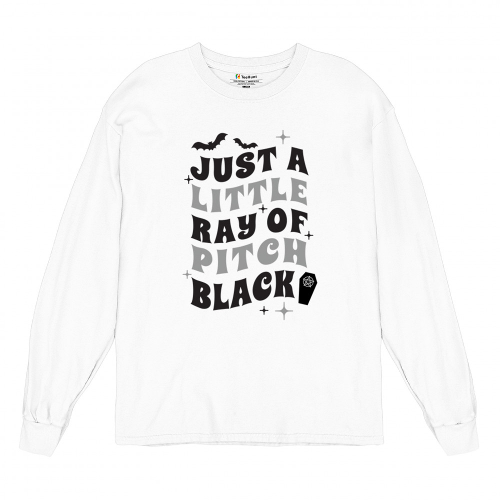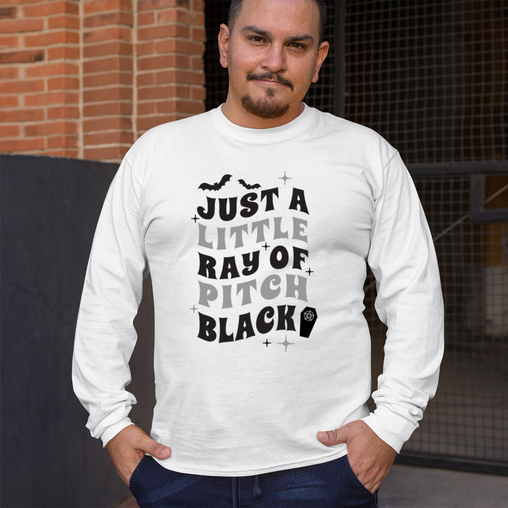 Showcase your dark humor with the "Just a Little Ray of Pitch Black" design—perfect for Halloween or everyday gothic style.