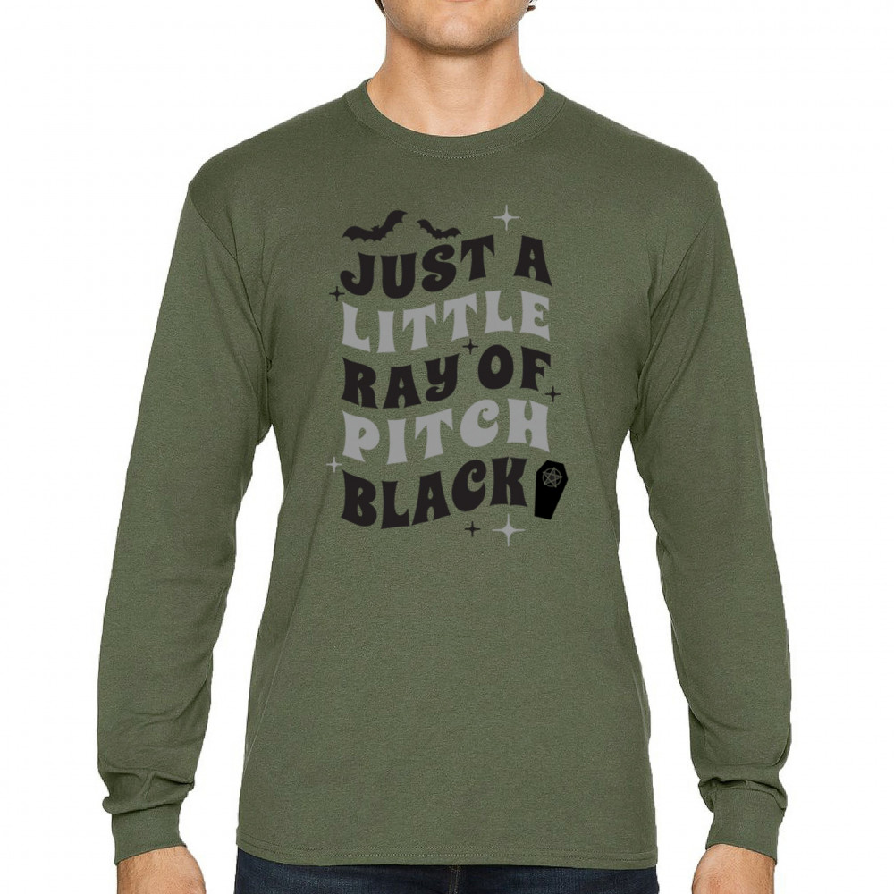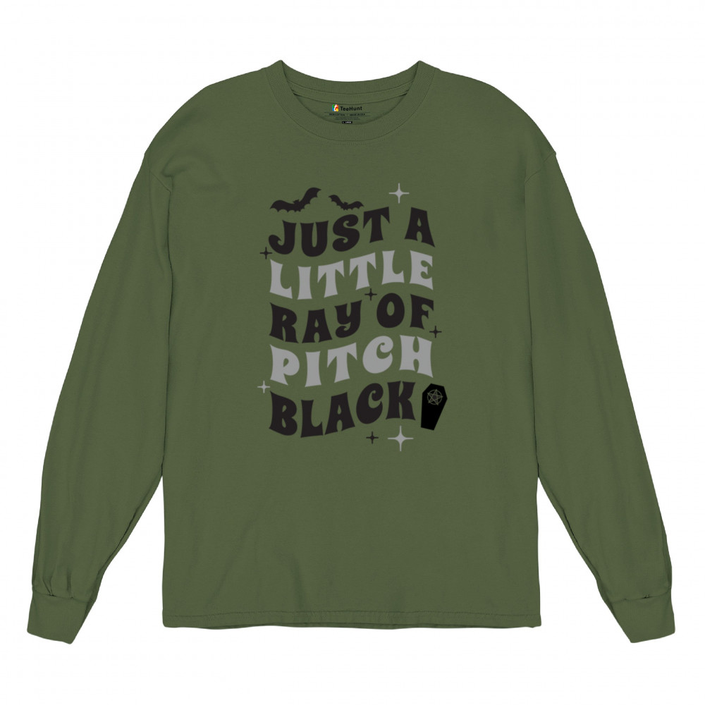 Showcase your dark humor with the "Just a Little Ray of Pitch Black" design—perfect for Halloween or everyday gothic style.