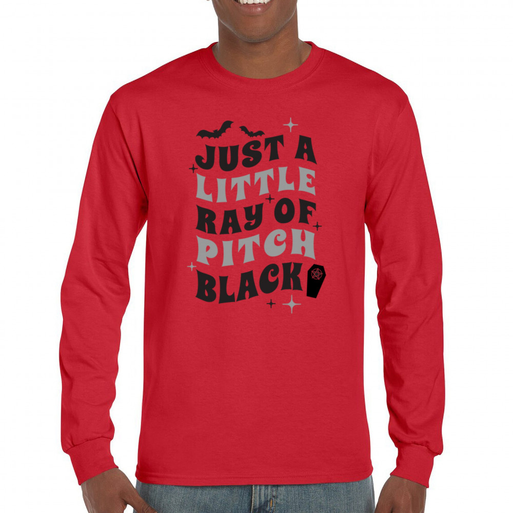 Showcase your dark humor with the "Just a Little Ray of Pitch Black" design—perfect for Halloween or everyday gothic style.