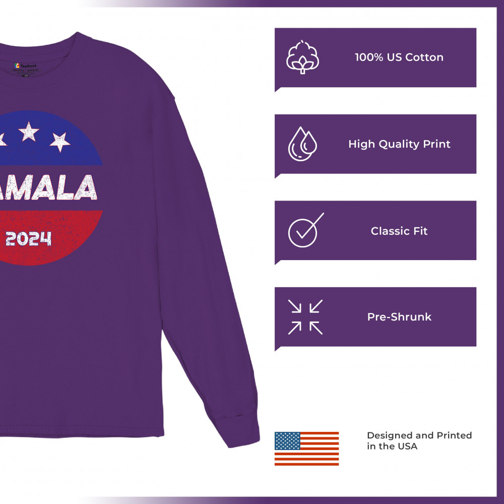 Join the movement and support Kamala Harris in the 2024 election with this premium t-shirt. Designed for anti-Trump supporters, liberals, and Democrats, this shirt showcases a striking design with the American flag and "Kamala Harris 2024" slogan. Made from top-quality materials, it ensures comfort and longevity, perfect for rallies, campaigns, or casual outings. Embrace diversity and advocate for the first female president, representing black Americans, Hispanic Americans, and the LGBTQ community. Wear this tee with pride and contribute to a positive change for America.