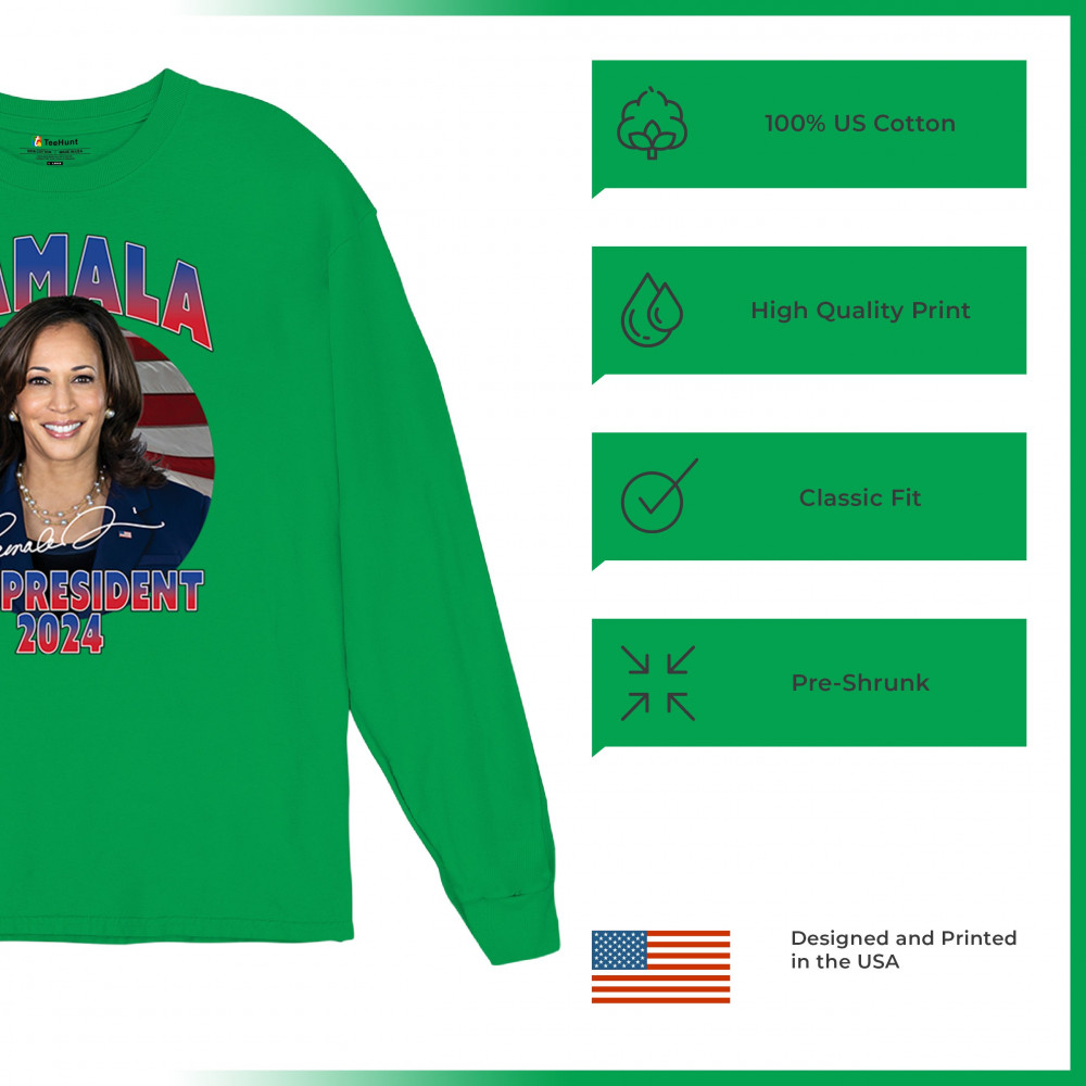 Support Kamala Harris's 2024 presidential campaign with this bold design. Celebrate liberal values, women's rights, and LGBTQ+ equality. Let's Win This!