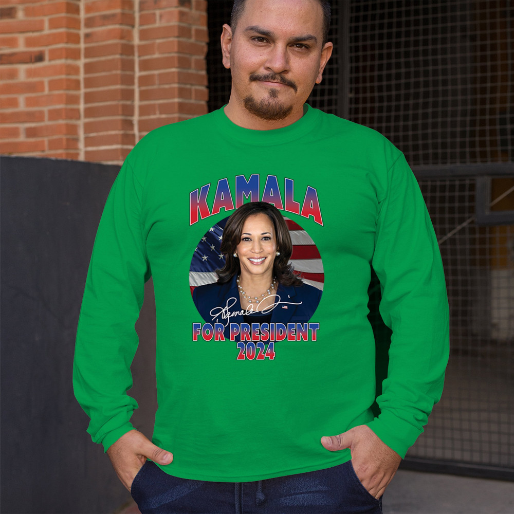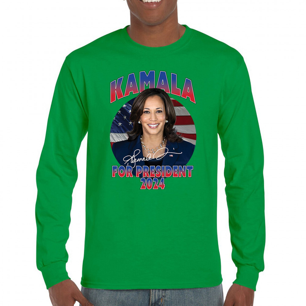Kamala Harris's 2024 presidential campaign design captures the essence of hope and progress. Featuring a bold and vibrant graphic with her name, portrait, and the American flag, this design symbolizes the fight for liberal values, women's rights, and LGBTQ+ equality. It's perfect for supporters who want to make a statement at rallies, events, or in everyday life. Show your support for a brighter future with this compelling design.