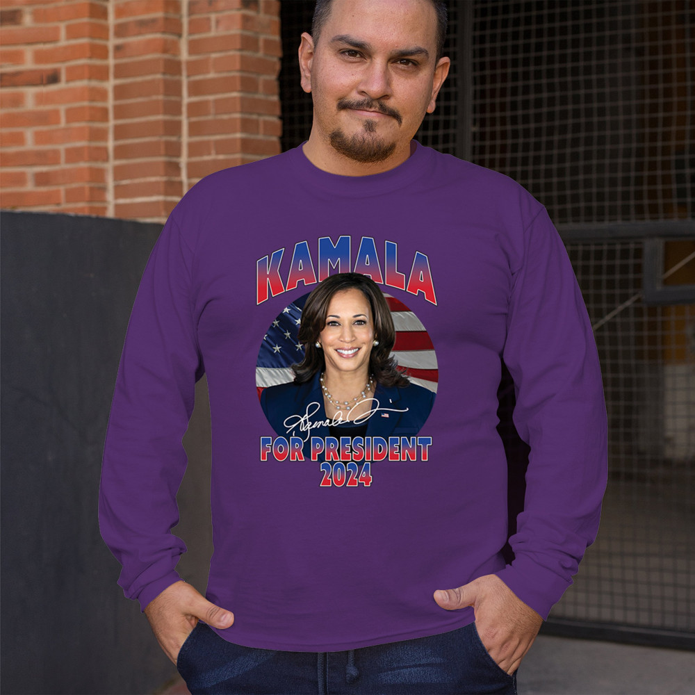 Kamala Harris's 2024 presidential campaign design captures the essence of hope and progress. Featuring a bold and vibrant graphic with her name, portrait, and the American flag, this design symbolizes the fight for liberal values, women's rights, and LGBTQ+ equality. It's perfect for supporters who want to make a statement at rallies, events, or in everyday life. Show your support for a brighter future with this compelling design.