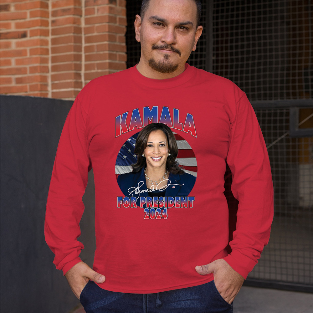 Kamala Harris's 2024 presidential campaign design captures the essence of hope and progress. Featuring a bold and vibrant graphic with her name, portrait, and the American flag, this design symbolizes the fight for liberal values, women's rights, and LGBTQ+ equality. It's perfect for supporters who want to make a statement at rallies, events, or in everyday life. Show your support for a brighter future with this compelling design.
