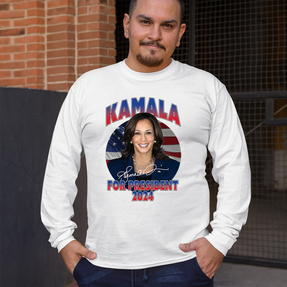 Kamala Harris's 2024 presidential campaign design captures the essence of hope and progress. Featuring a bold and vibrant graphic with her name, portrait, and the American flag, this design symbolizes the fight for liberal values, women's rights, and LGBTQ+ equality. It's perfect for supporters who want to make a statement at rallies, events, or in everyday life. Show your support for a brighter future with this compelling design.