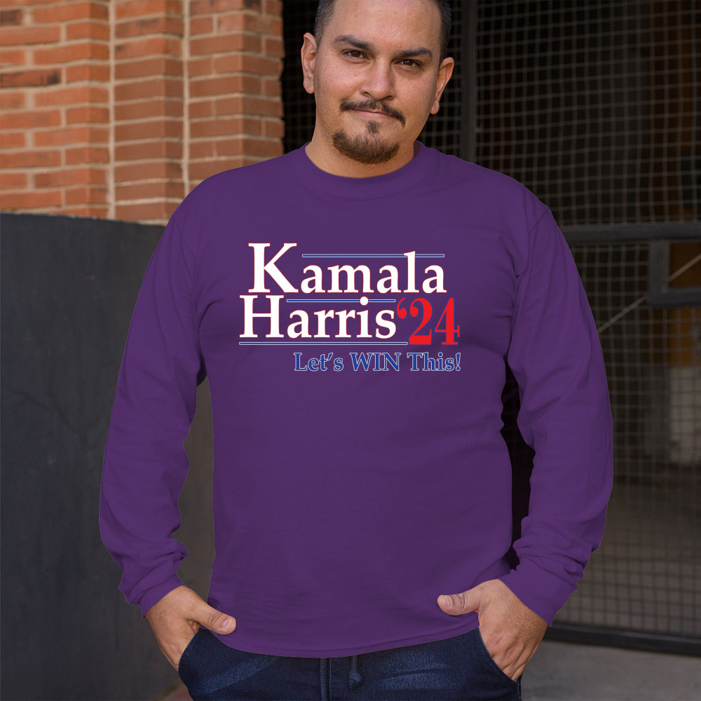 Support Kamala Harris's 2024 campaign with this bold design featuring "Let's WIN This!" Perfect for rallies, elections, and everyday wear.