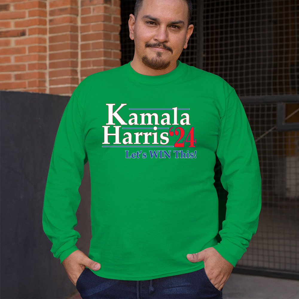 Support Kamala Harris's 2024 campaign with this bold design featuring "Let's WIN This!" Perfect for rallies, elections, and everyday wear.