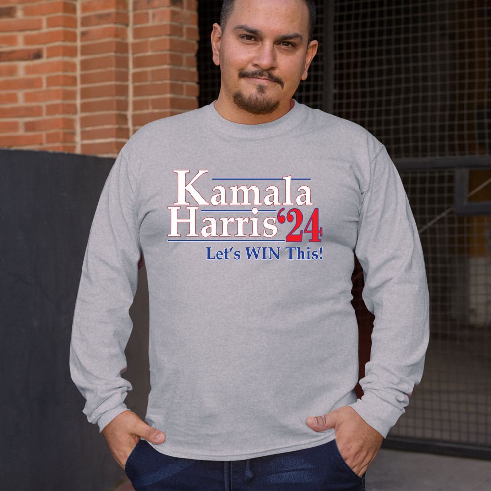 Support Kamala Harris's 2024 campaign with this bold design featuring "Let's WIN This!" Perfect for rallies, elections, and everyday wear.