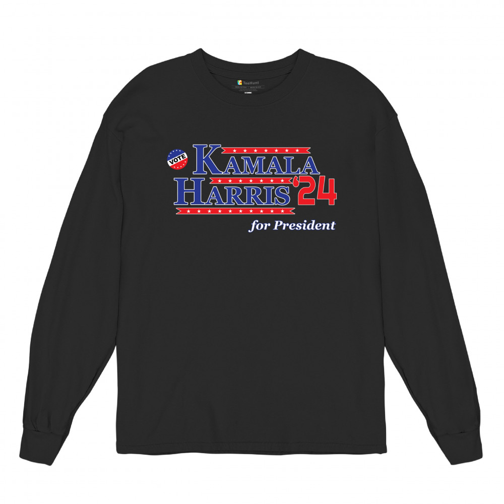 Support Kamala Harris for President in 2024 with this bold, patriotic design. Perfect for liberals, Democrats, and minority communities.