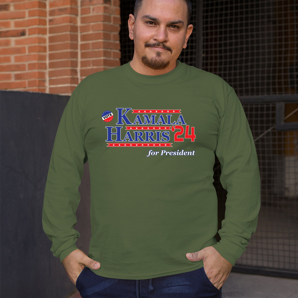 Support Kamala Harris for President in 2024 with this bold, patriotic design. Perfect for liberals, Democrats, and minority communities.