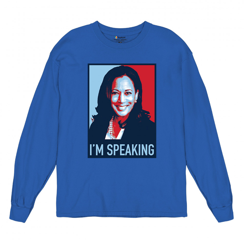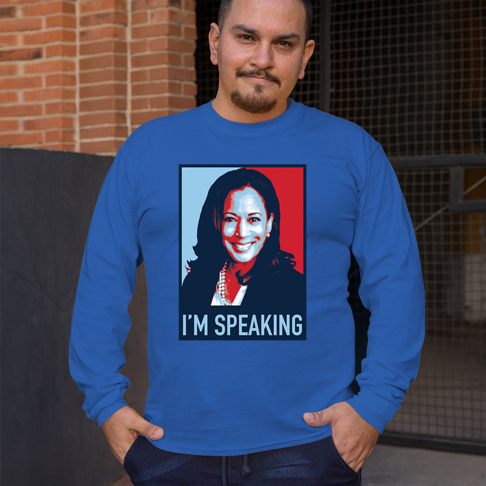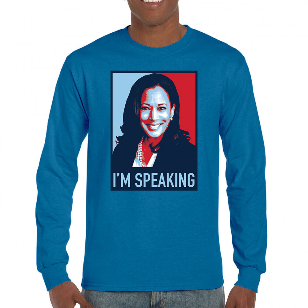 Show your support for Kamala Harris and Tim Walz with this "I'm Speaking" design. A bold statement celebrating liberal values and progressive policies. "Let's Win This"