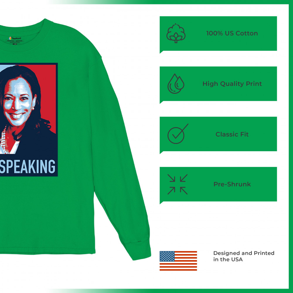 Featuring the iconic "I'm Speaking" image of Kamala Harris, this design is perfect for showing your support for the Harris-Walz 2024 campaign. The red, white, and blue colors make a bold statement, celebrating the values of equality and justice. With a focus on liberal values, including LGBTQ+ rights, women's empowerment, and progressive policies, this design is ideal for rallies or everyday wear. Stand up for what you believe in and wear this design with pride. "Let's Win This"