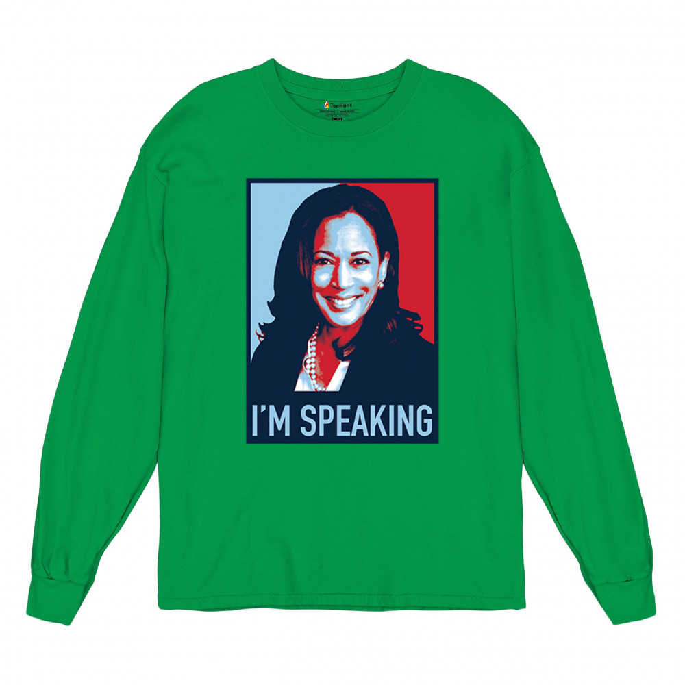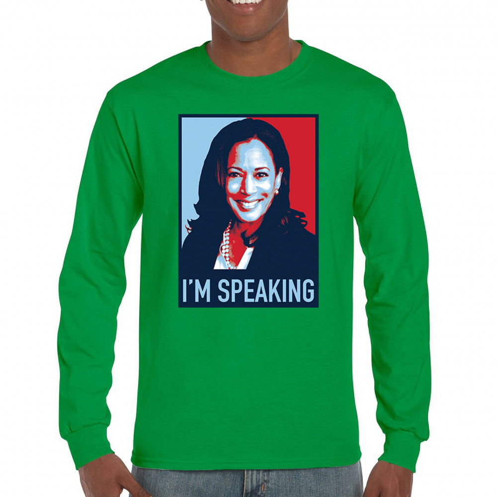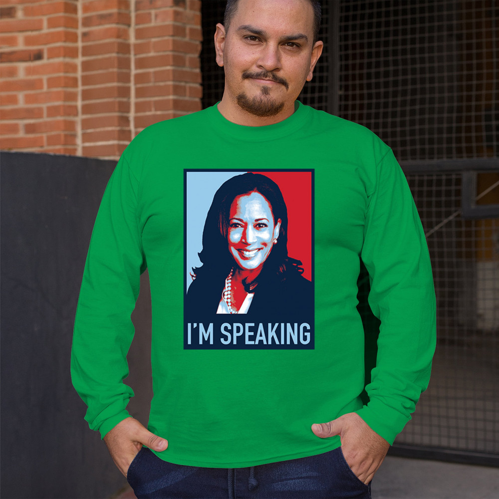 Show your support for Kamala Harris and Tim Walz with this "I'm Speaking" design. A bold statement celebrating liberal values and progressive policies. "Let's Win This"