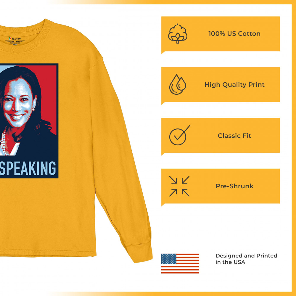 Featuring the iconic "I'm Speaking" image of Kamala Harris, this design is perfect for showing your support for the Harris-Walz 2024 campaign. The red, white, and blue colors make a bold statement, celebrating the values of equality and justice. With a focus on liberal values, including LGBTQ+ rights, women's empowerment, and progressive policies, this design is ideal for rallies or everyday wear. Stand up for what you believe in and wear this design with pride. "Let's Win This"