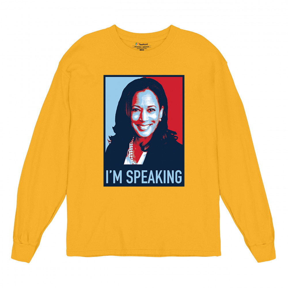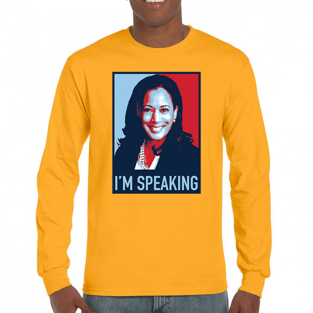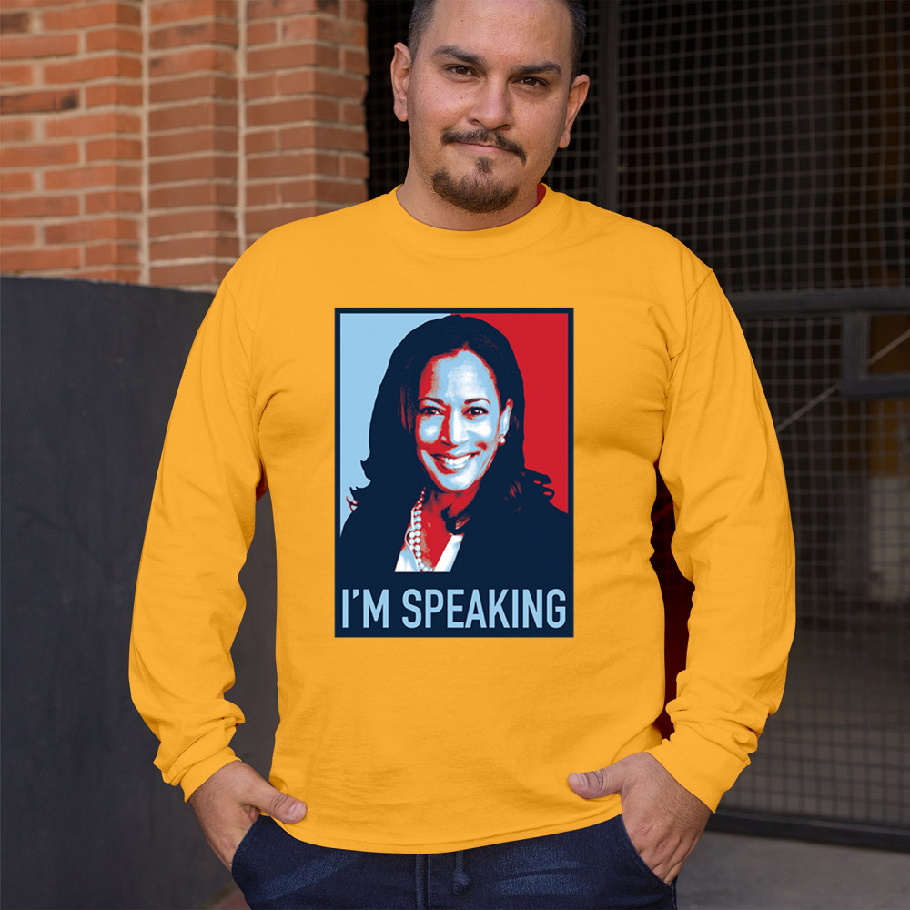 Show your support for Kamala Harris and Tim Walz with this "I'm Speaking" design. A bold statement celebrating liberal values and progressive policies. "Let's Win This"