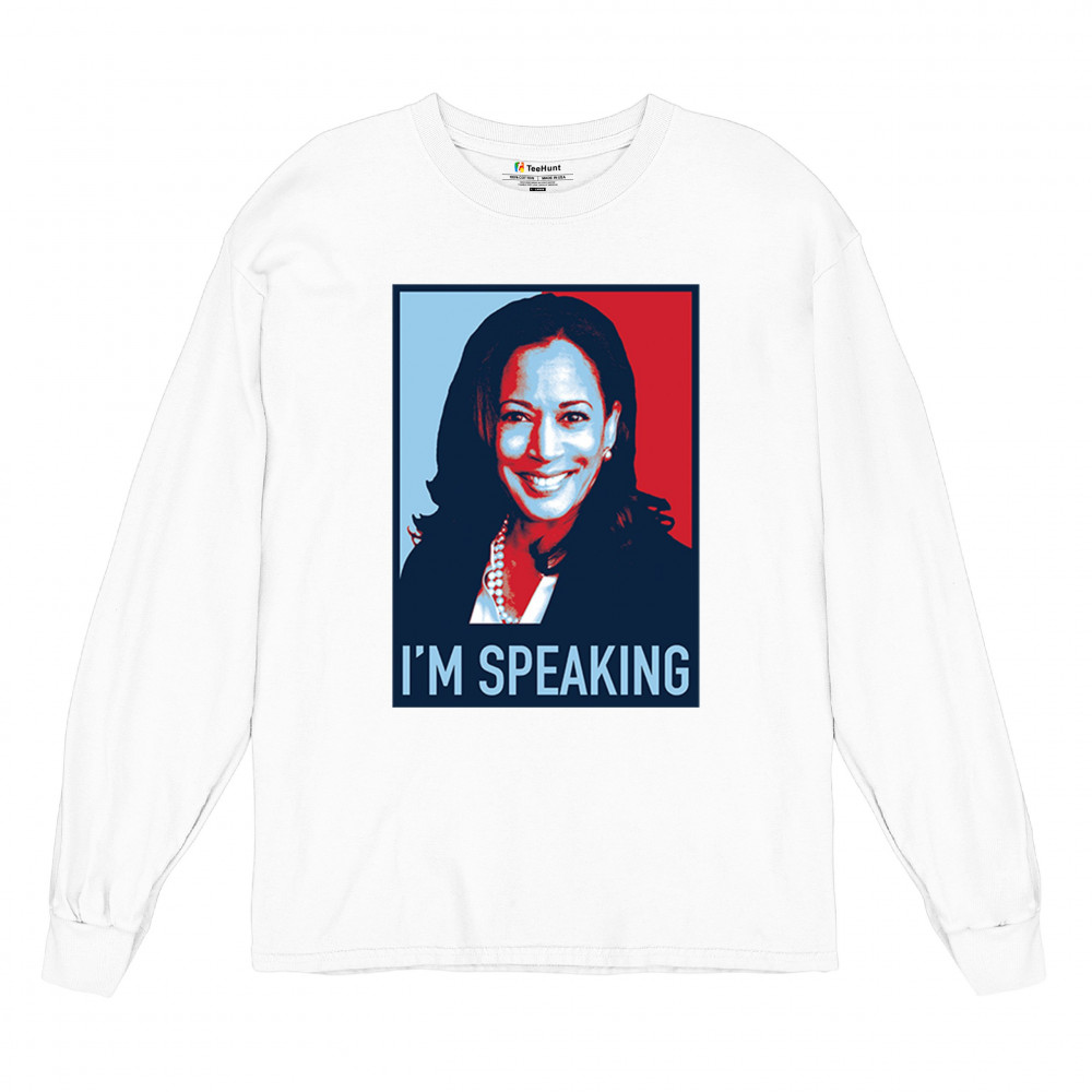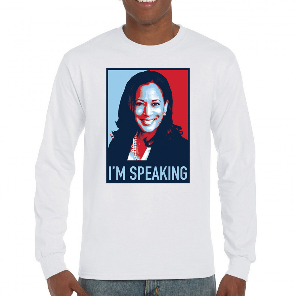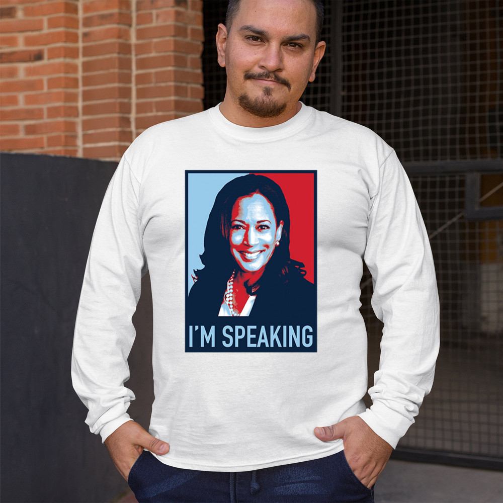 Show your support for Kamala Harris and Tim Walz with this "I'm Speaking" design. A bold statement celebrating liberal values and progressive policies. "Let's Win This"