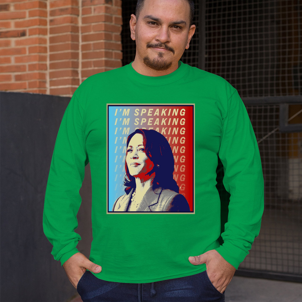 Support Kamala Harris with our "I'M SPEAKING" design, perfect for Democrats, liberals, and anti-Trump supporters. Show your pride and unity.