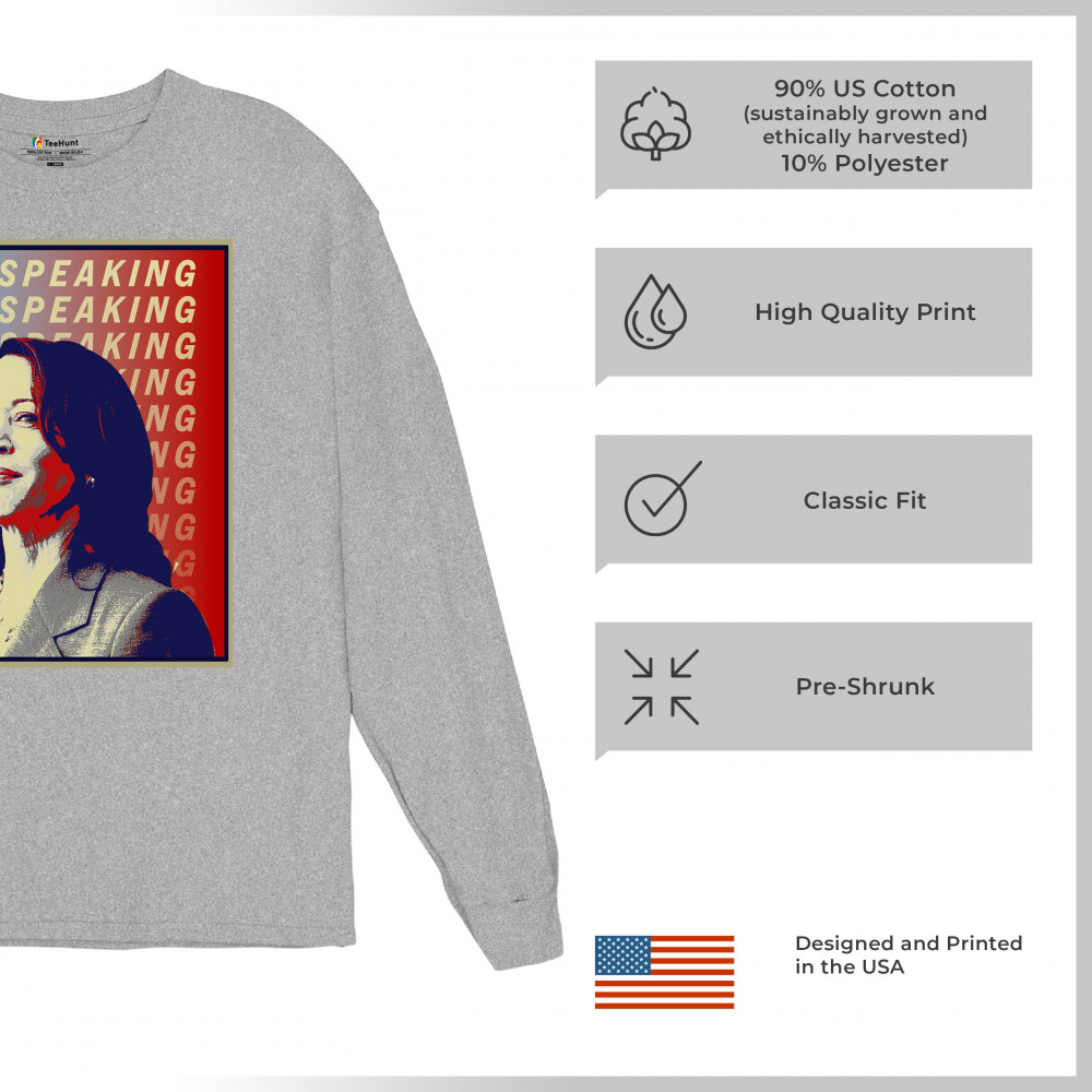 Support Kamala Harris with this bold and inspiring design. "I'M SPEAKING" echoes her powerful voice in the political arena, making it perfect for anti-Trump supporters, liberals, and Democrats. Crafted from durable materials, this design is comfortable for any event, from rallies to casual outings. Celebrate diversity and the historic candidacy of the potential first female president, resonating with black Americans, Hispanic Americans, LGBTQ supporters, and other minorities. Make a statement of hope and progress with this unique design.