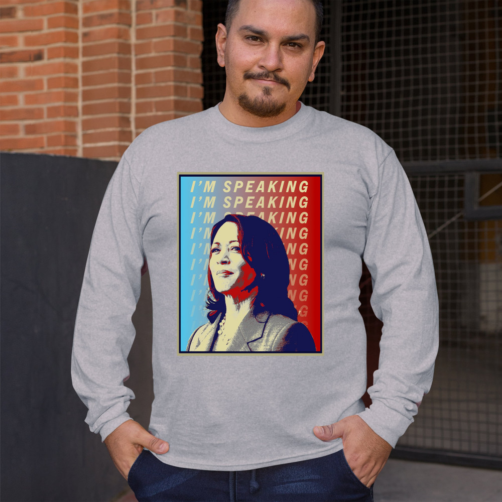 Support Kamala Harris with our "I'M SPEAKING" design, perfect for Democrats, liberals, and anti-Trump supporters. Show your pride and unity.