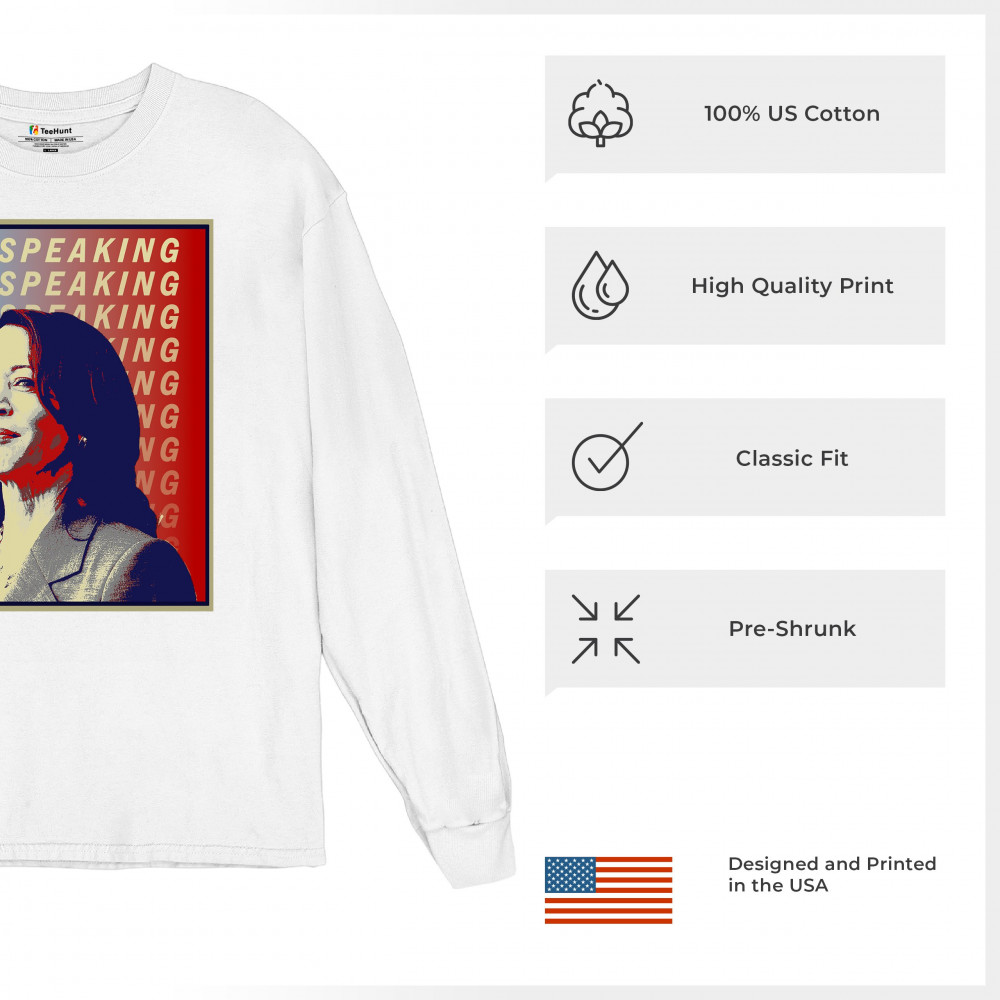Support Kamala Harris with this bold and inspiring design. "I'M SPEAKING" echoes her powerful voice in the political arena, making it perfect for anti-Trump supporters, liberals, and Democrats. Crafted from durable materials, this design is comfortable for any event, from rallies to casual outings. Celebrate diversity and the historic candidacy of the potential first female president, resonating with black Americans, Hispanic Americans, LGBTQ supporters, and other minorities. Make a statement of hope and progress with this unique design.