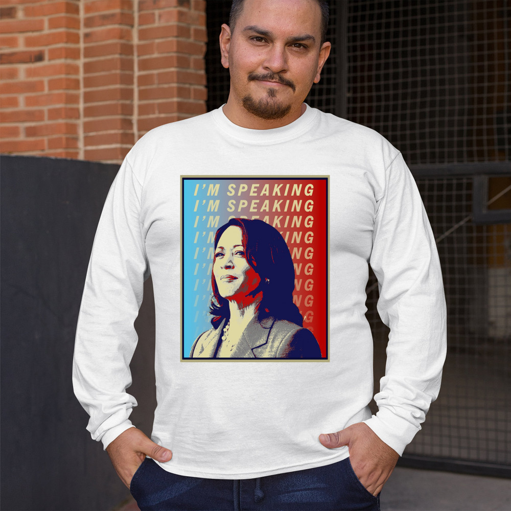 Support Kamala Harris with our "I'M SPEAKING" design, perfect for Democrats, liberals, and anti-Trump supporters. Show your pride and unity.