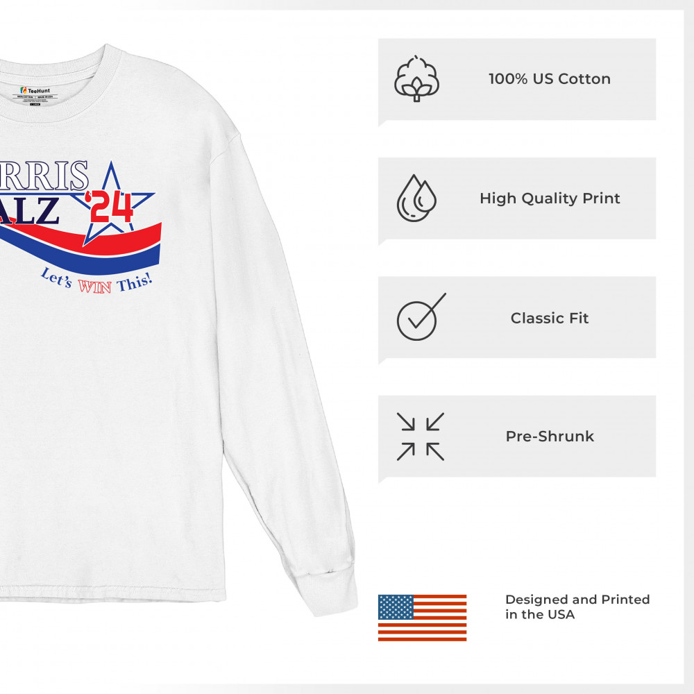 Express your support for Kamala Harris and Tim Walz in the 2024 election with this striking design. Perfect for those who advocate for LGBTQ+ rights, women's rights, and liberal values, it symbolizes the fight for a fair and just society. This design is ideal for rallies or daily wear to show your commitment to progress and equality. Stand out and show that you believe in a brighter, more inclusive future. Let's Win This!